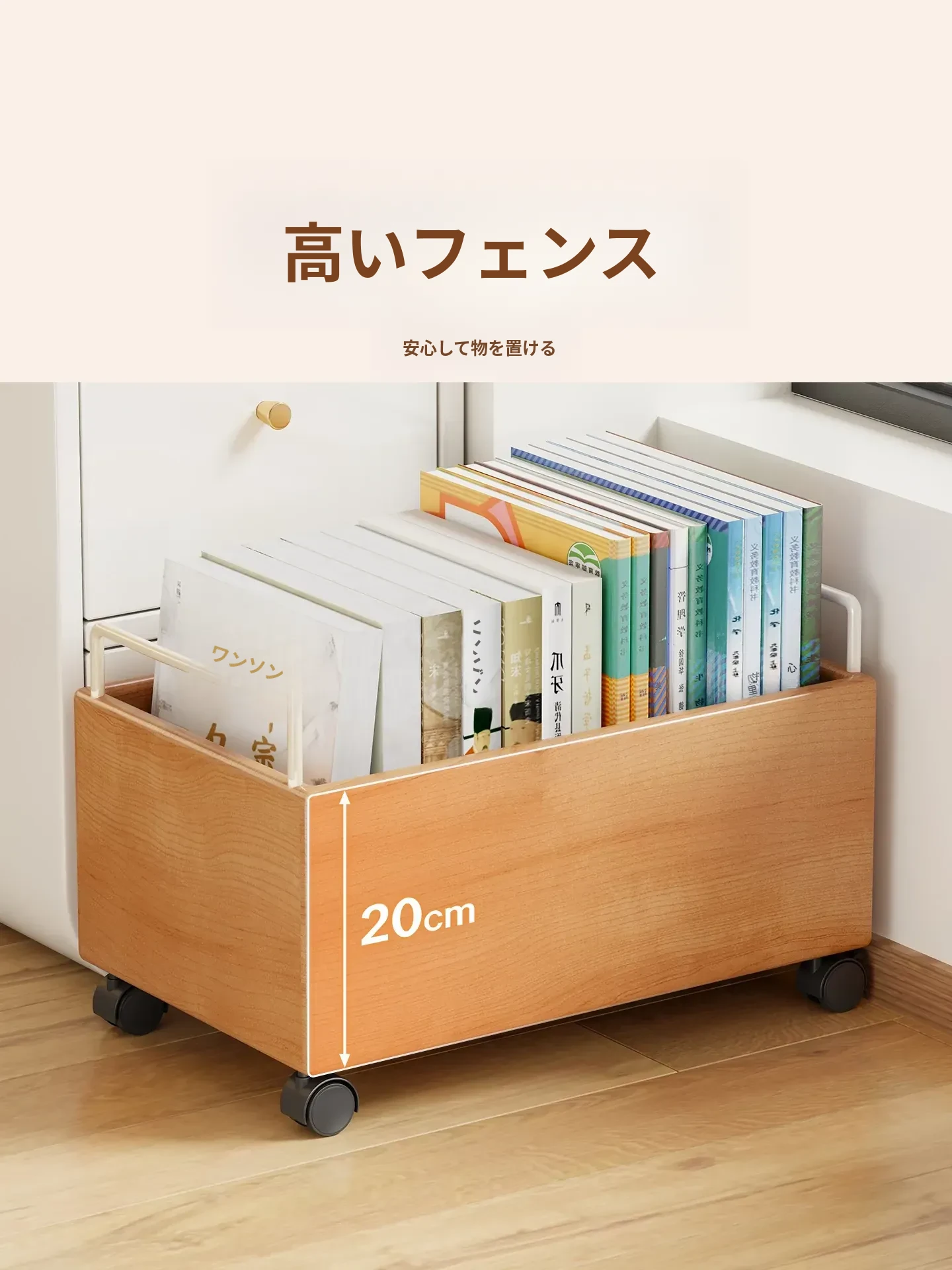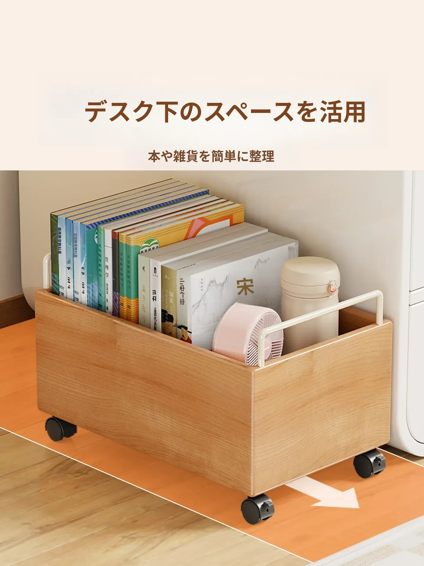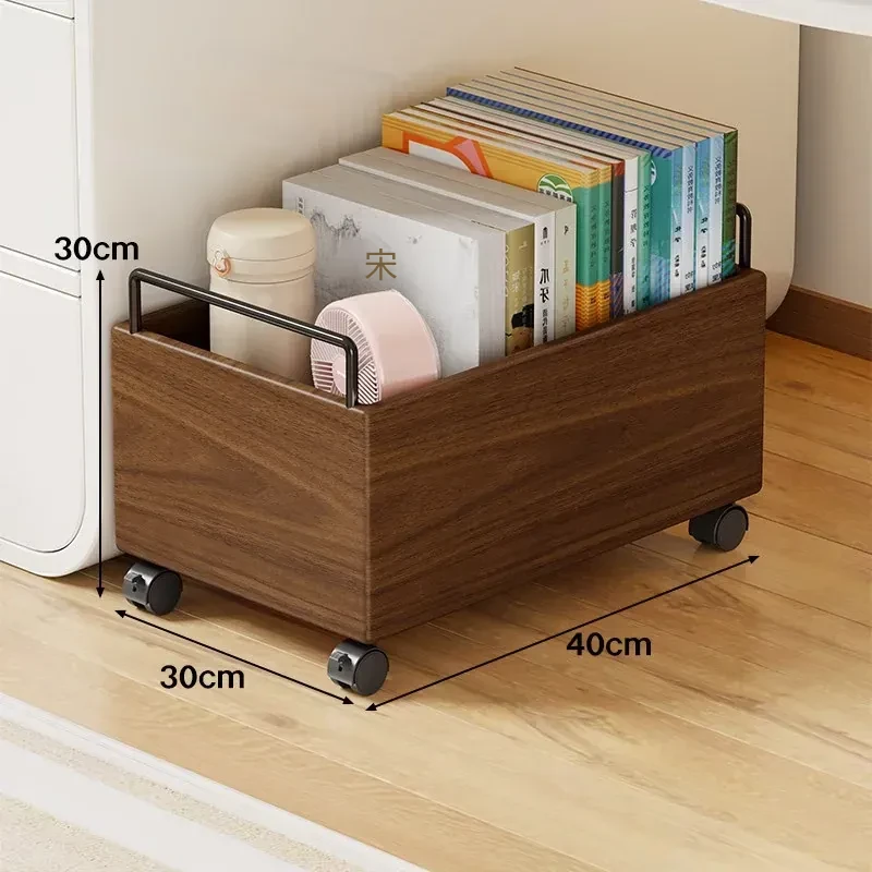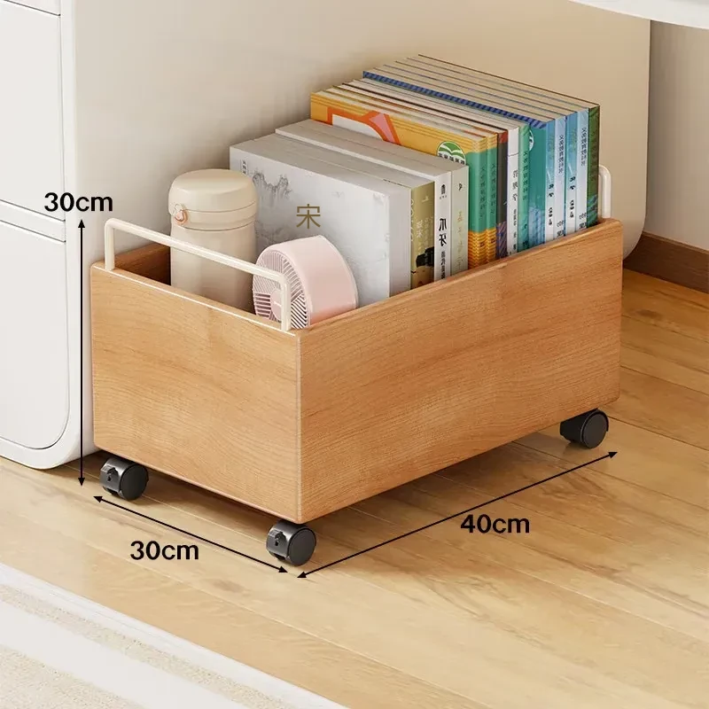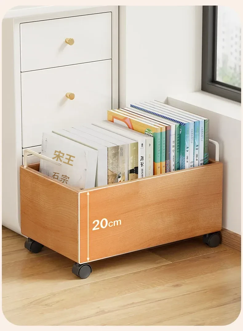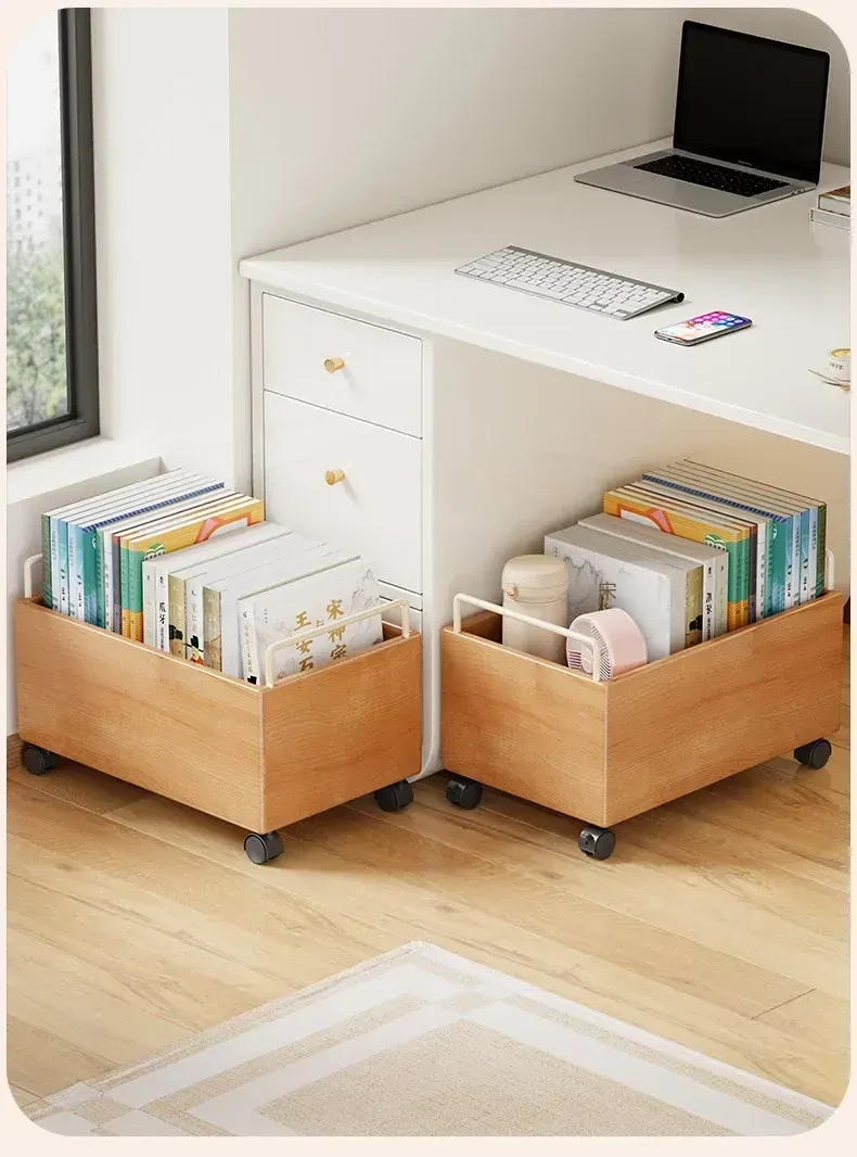 実木製のブックラック付き移動式収納カート - 書籍をすっきり整理!キャスター付きで簡単移動、デスク下にもぴったり。おしゃれな収納アイテムで、あなたの読書空間をもっと便利に!