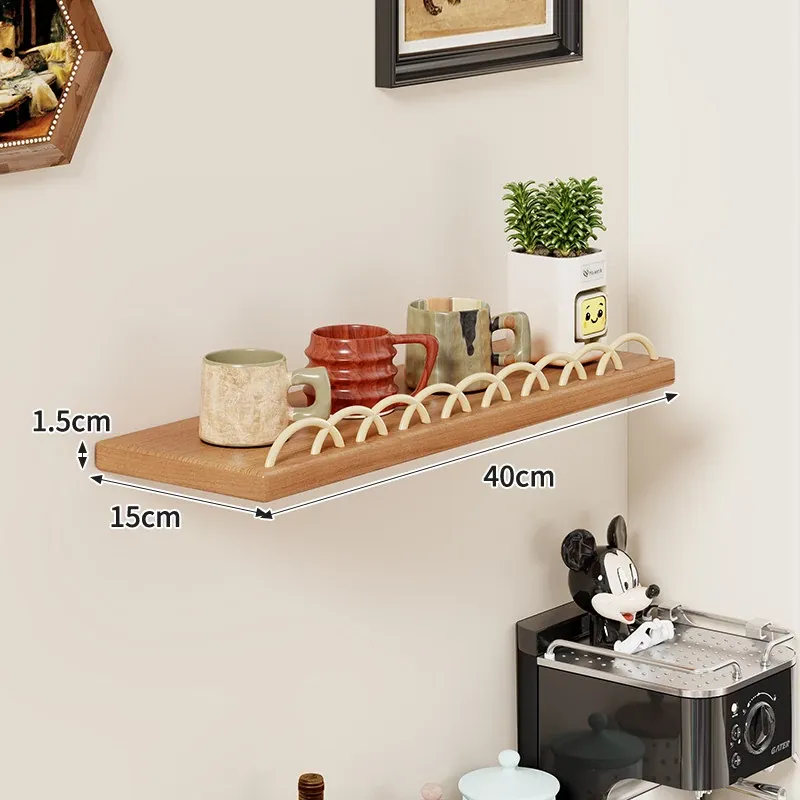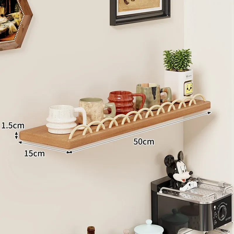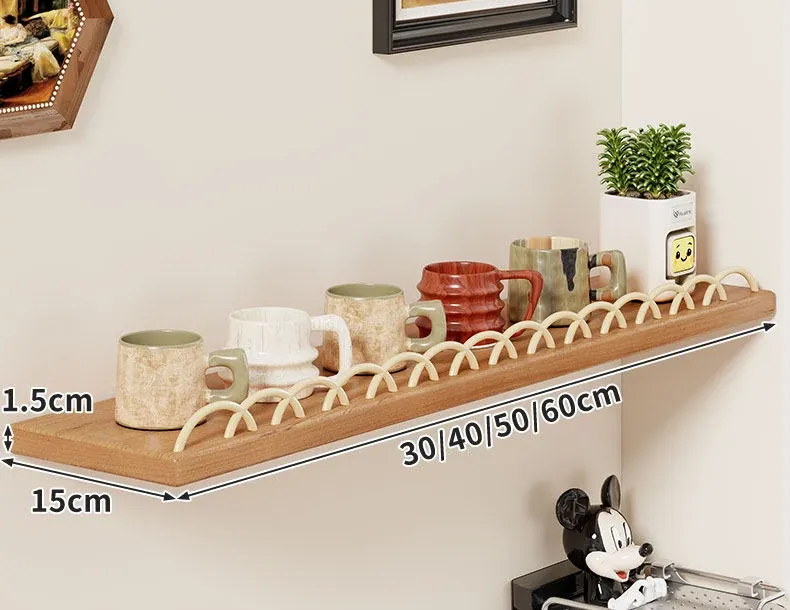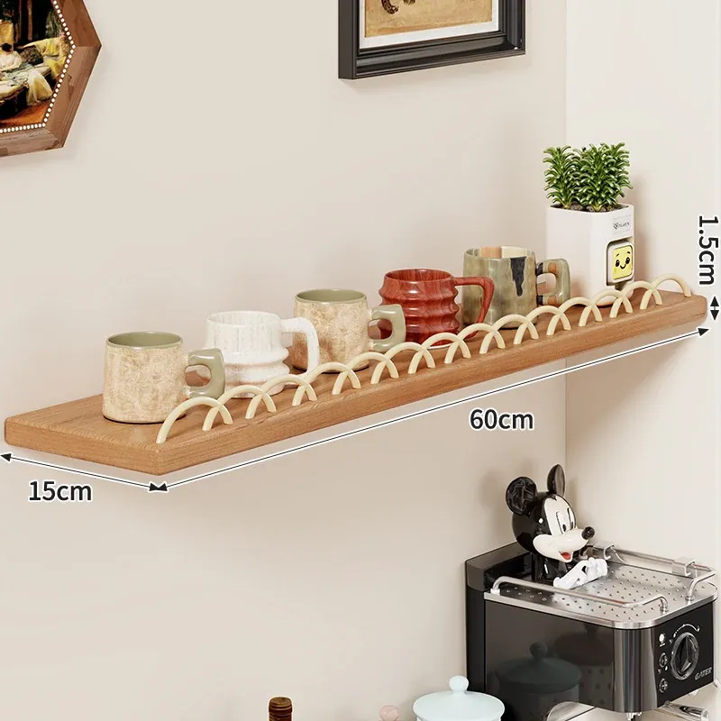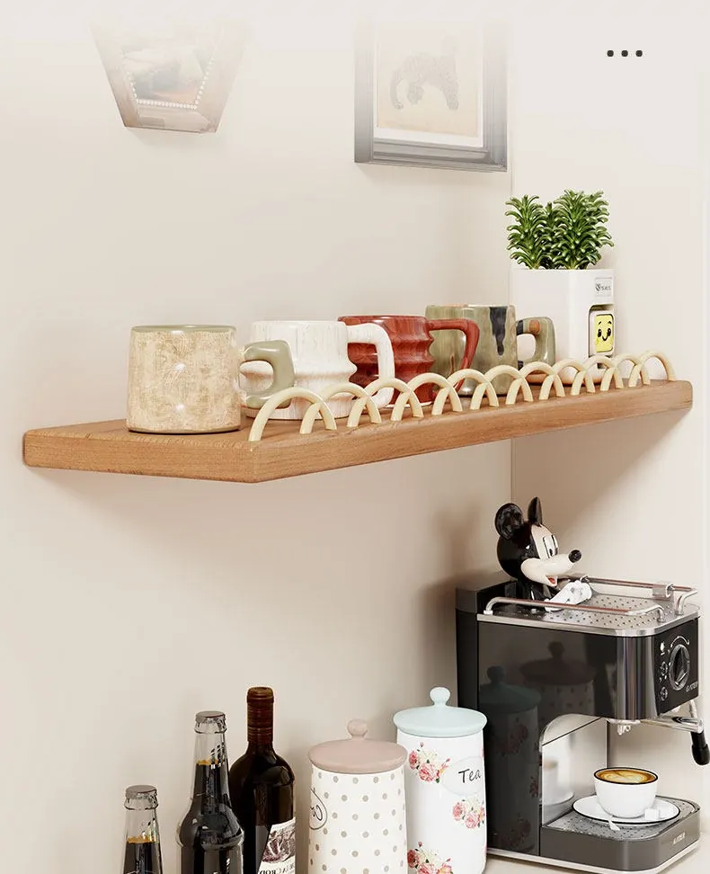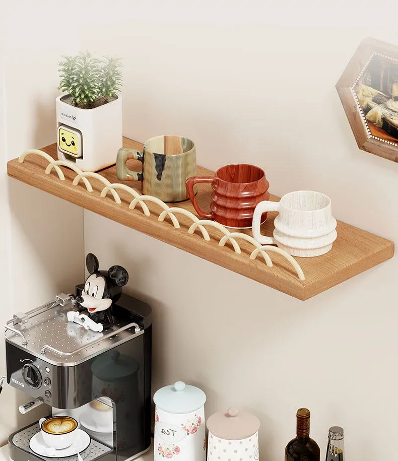 天然木製マグカップ収納ラック - 壁掛け式でスペースを有効活用!リビングや書斎に最適な、スタイリッシュなデザインのマグカップ&ティーカップ収納ラック。おしゃれに整理整頓して、毎日のコーヒータイムをもっと楽しく!