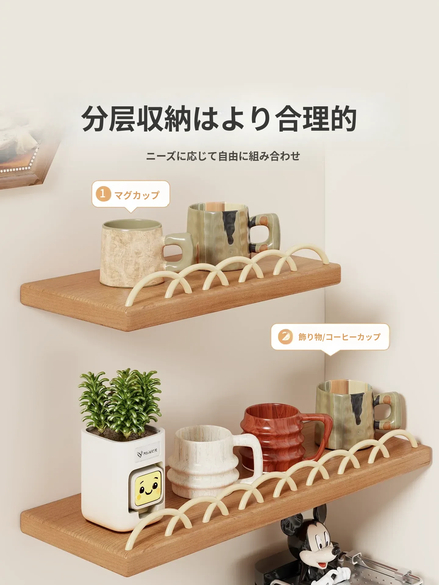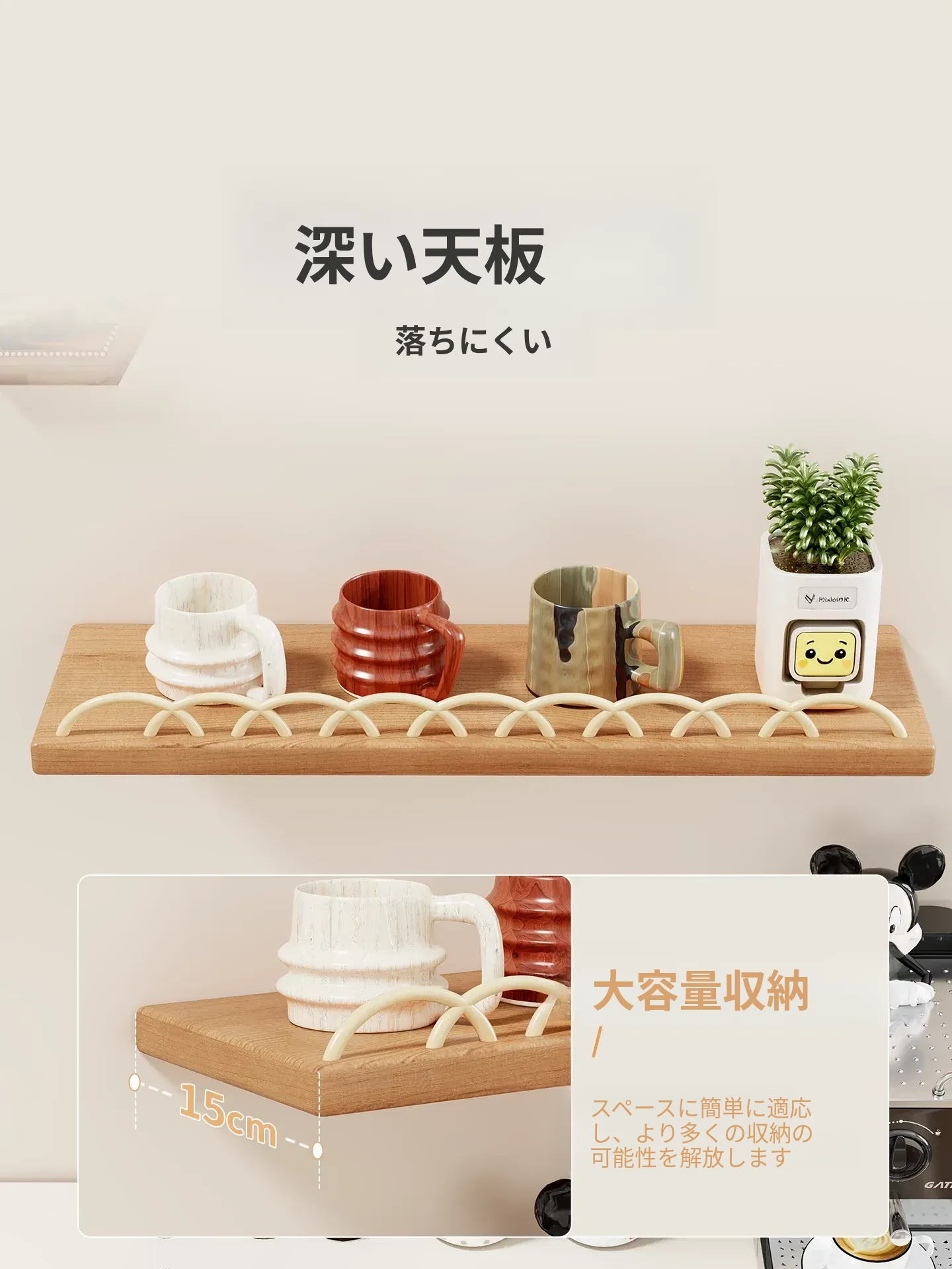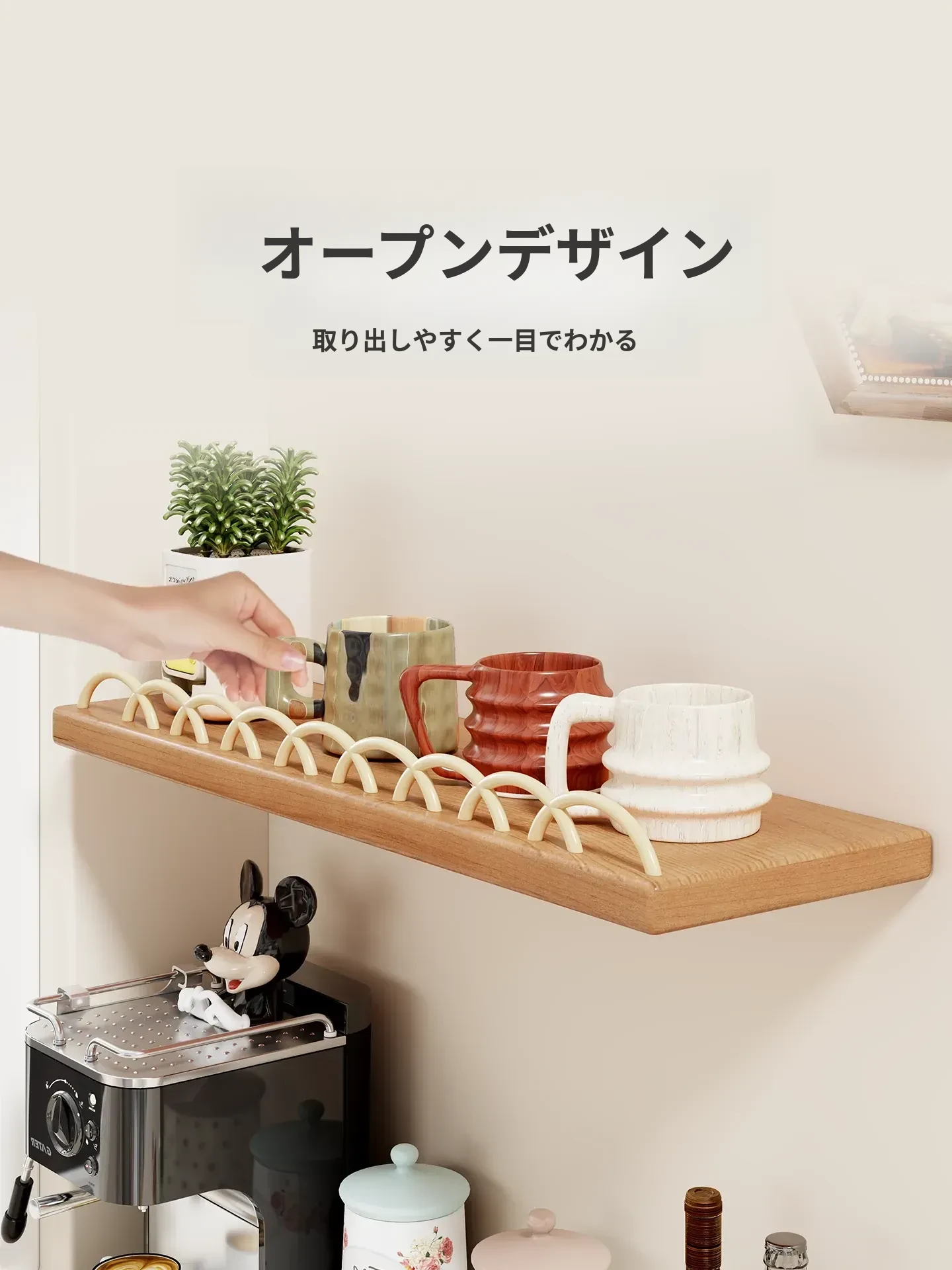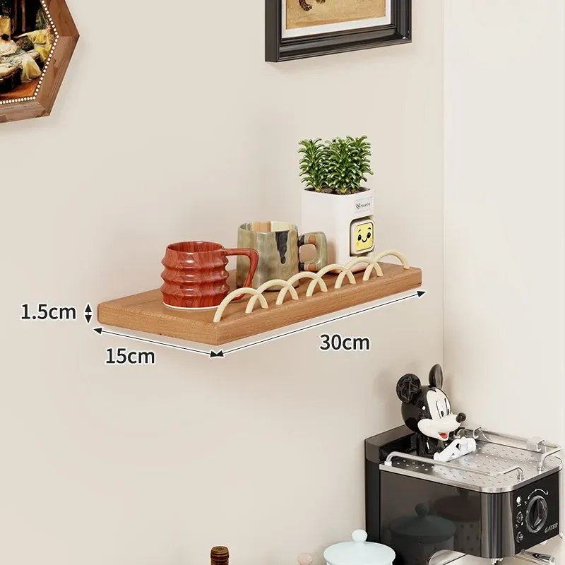 天然木製マグカップ収納ラック - 壁掛け式でスペースを有効活用!リビングや書斎に最適な、スタイリッシュなデザインのマグカップ&ティーカップ収納ラック。おしゃれに整理整頓して、毎日のコーヒータイムをもっと楽しく!