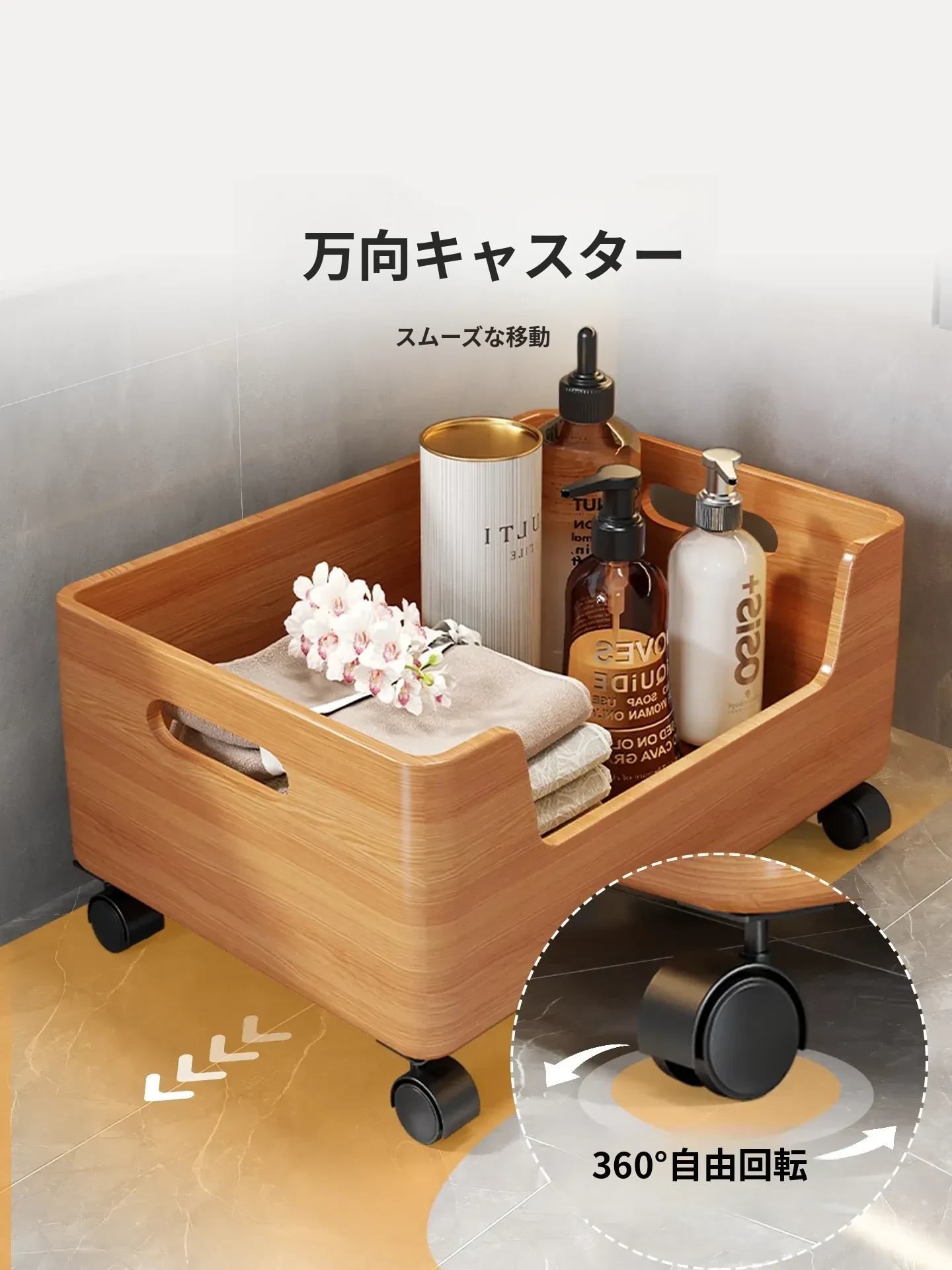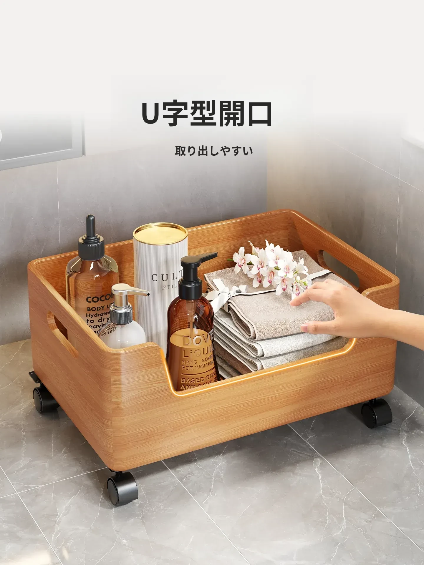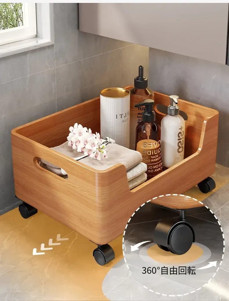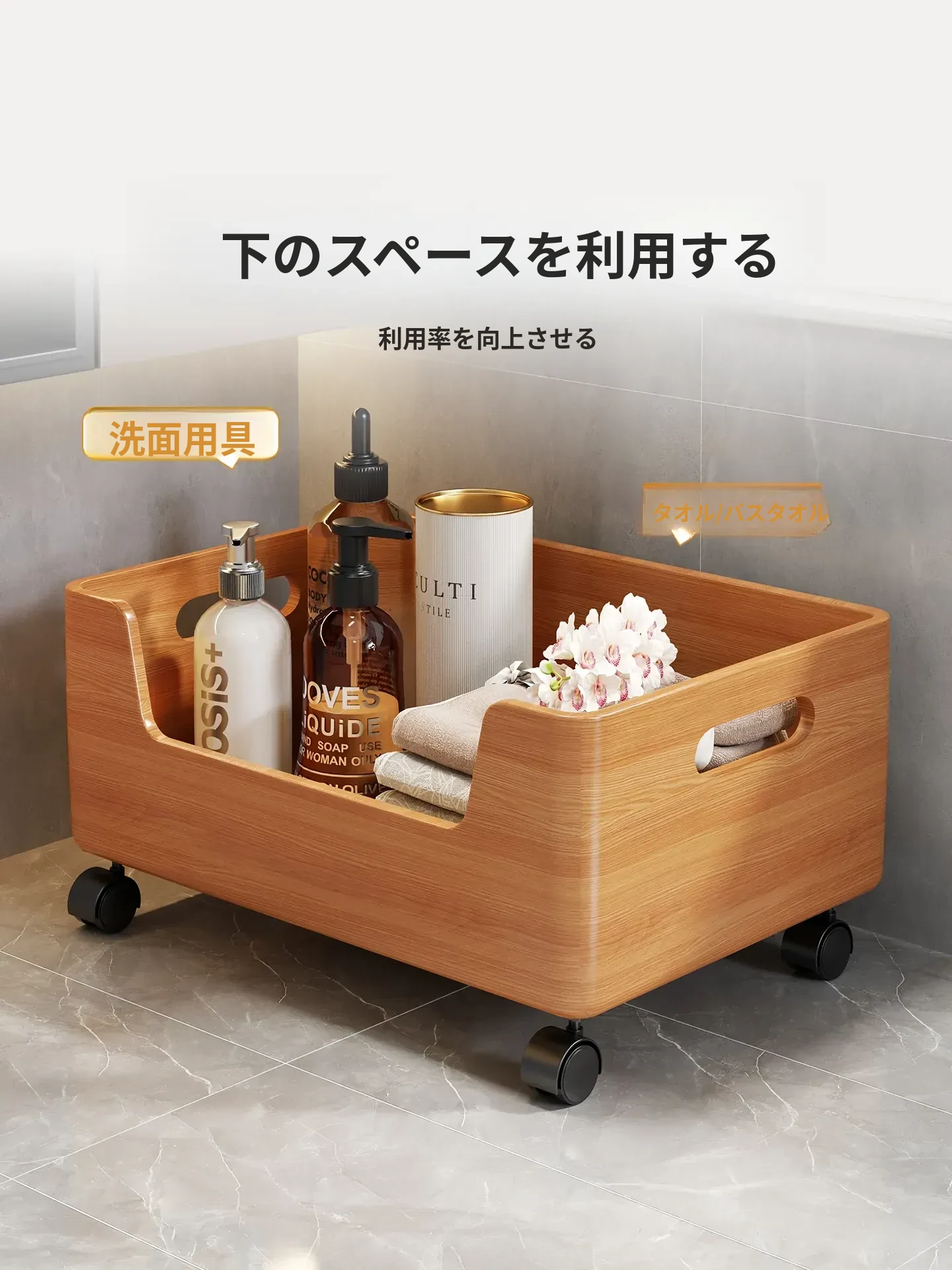 天然木製バスルームキャビネット下収納棚、トイレ洗面台下の便利なランドリーバスケット、洗剤収納ボックス付きの移動式カートで、スッキリ整理整頓!おしゃれなインテリアにもぴったり!