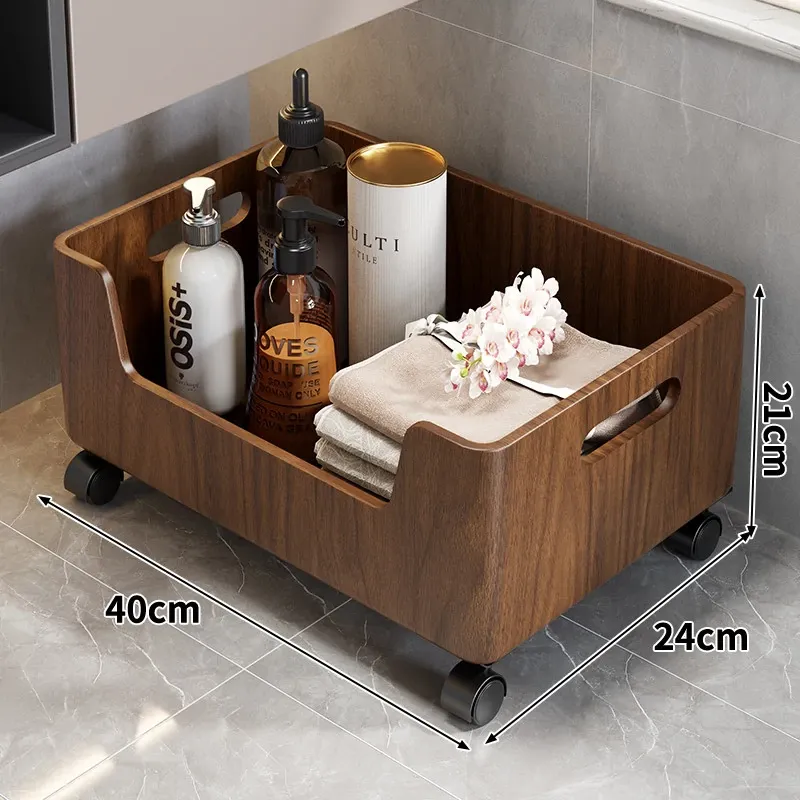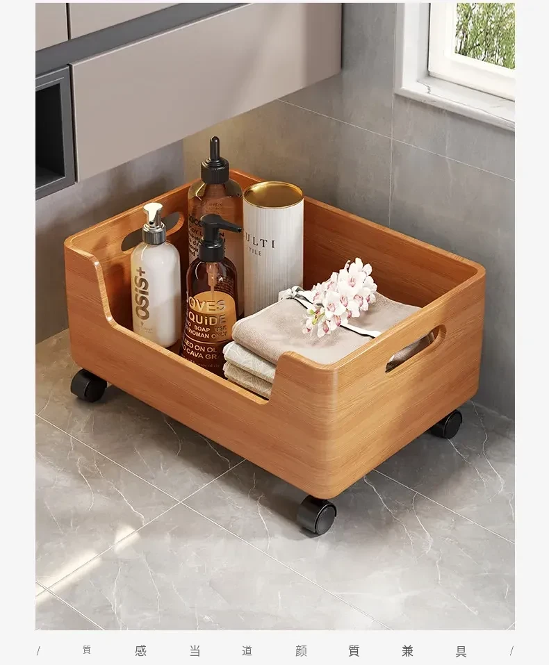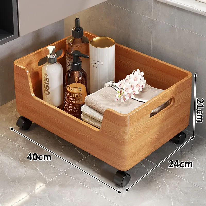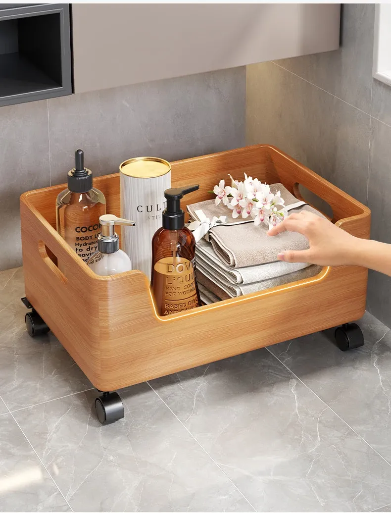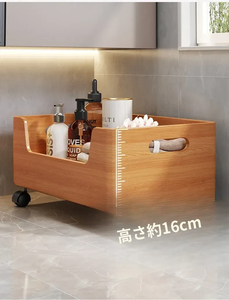 天然木製バスルームキャビネット下収納棚、トイレ洗面台下の便利なランドリーバスケット、洗剤収納ボックス付きの移動式カートで、スッキリ整理整頓!おしゃれなインテリアにもぴったり!