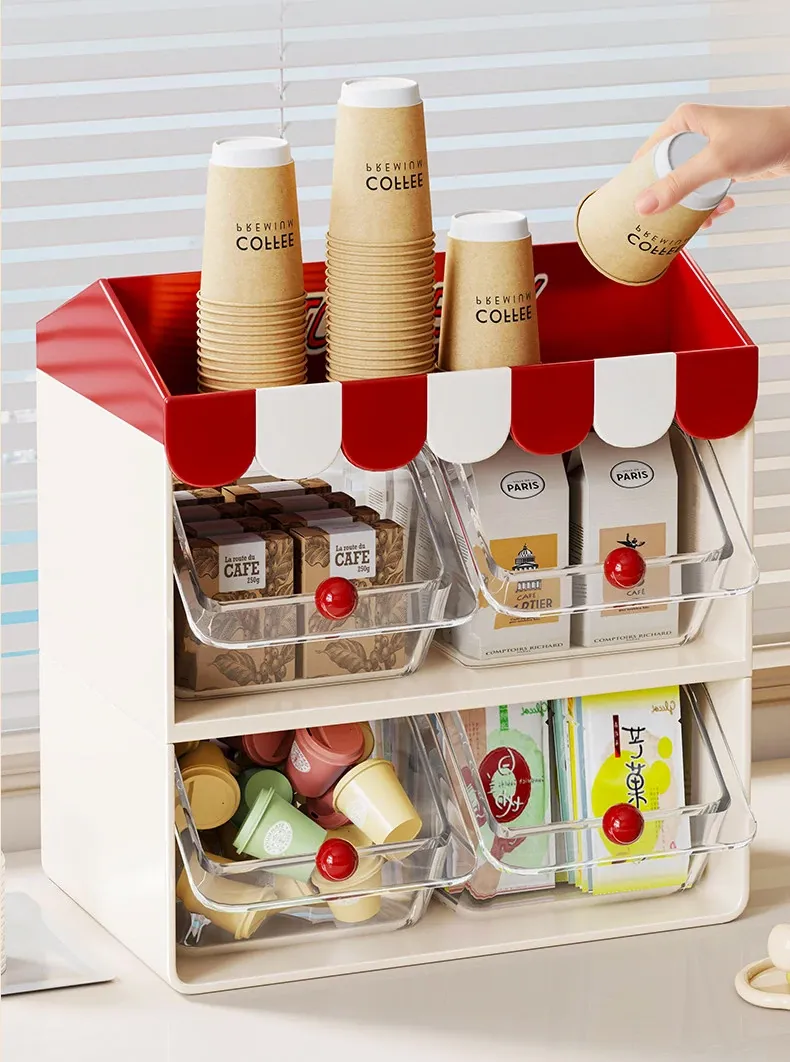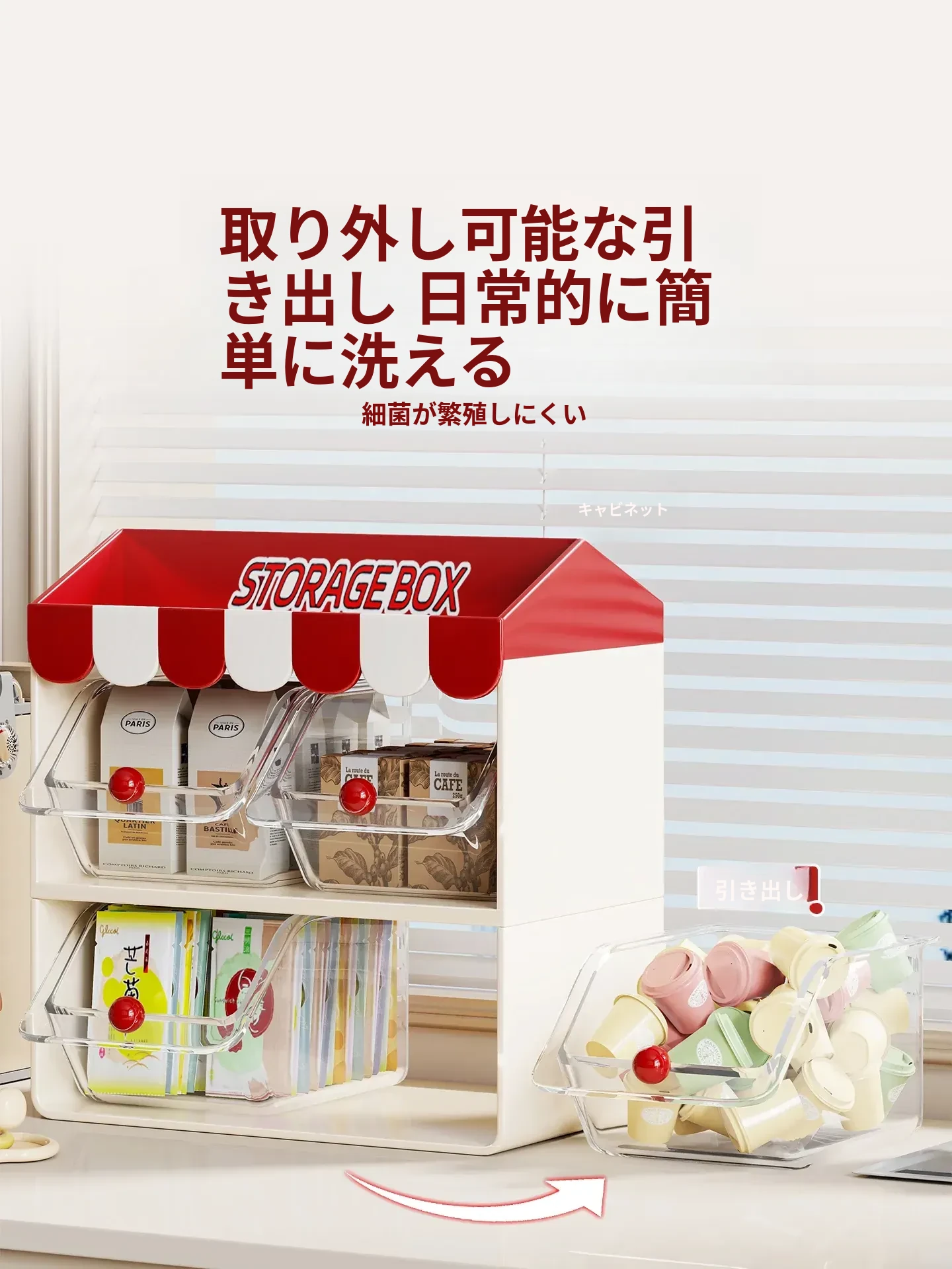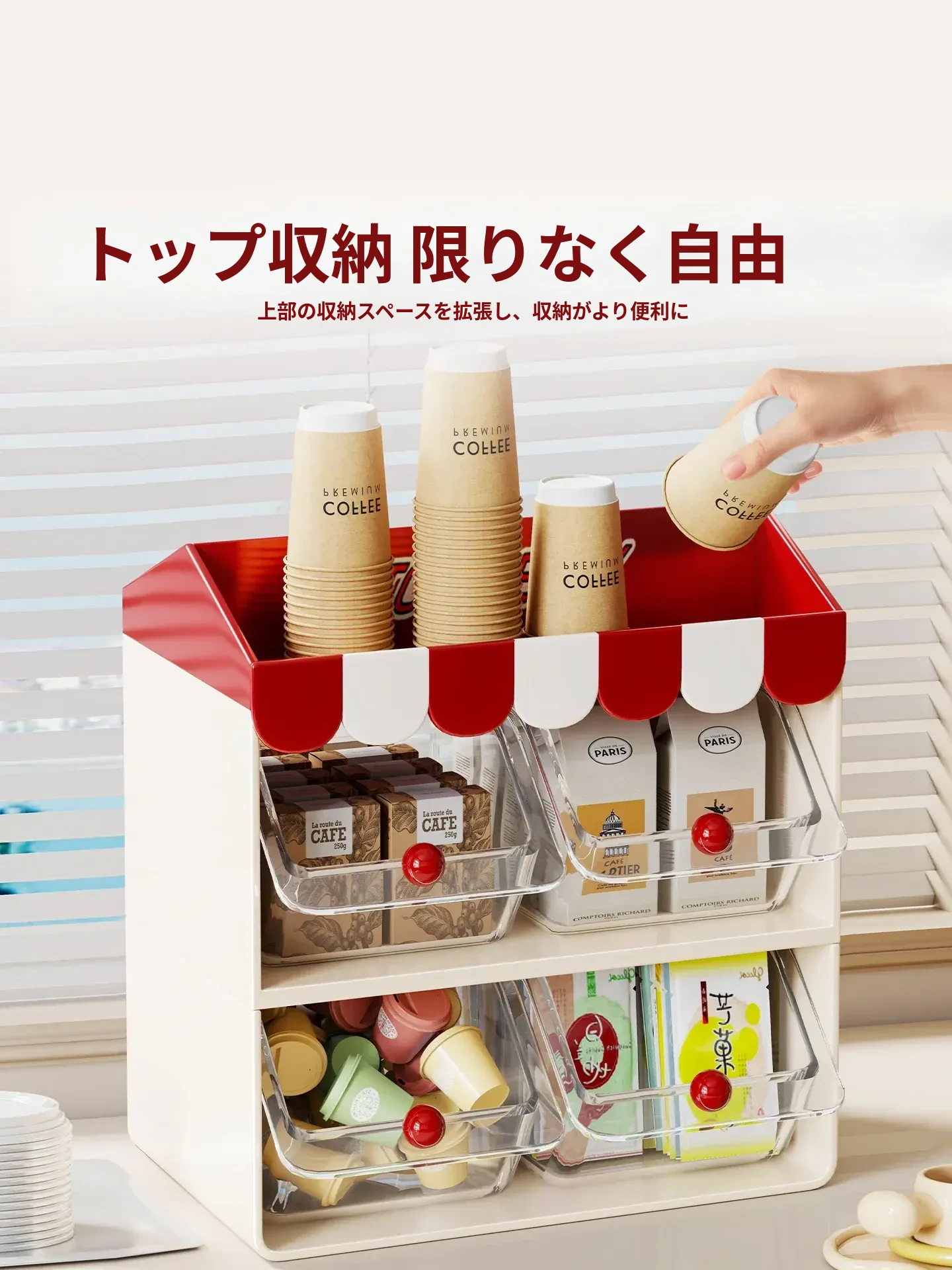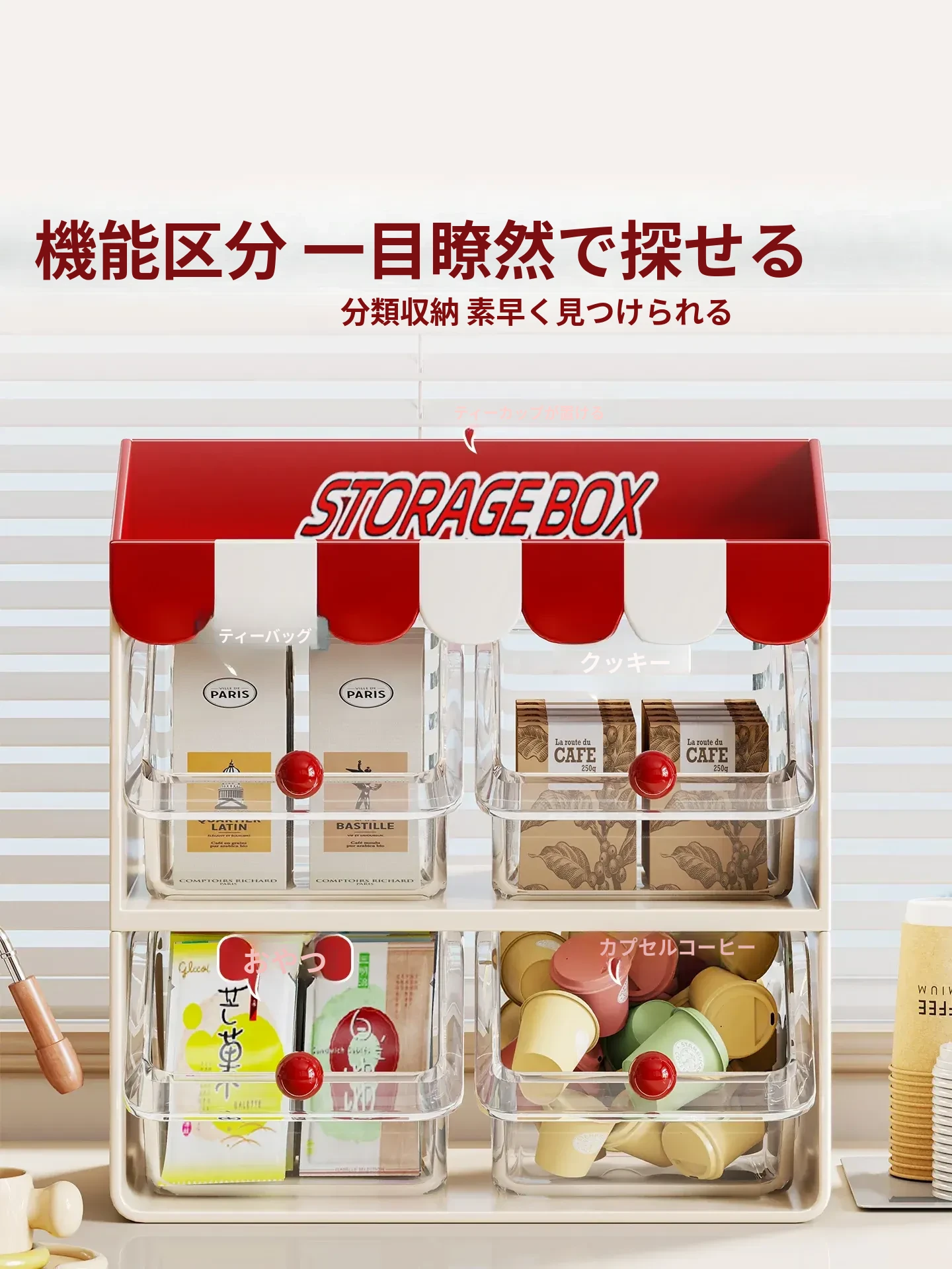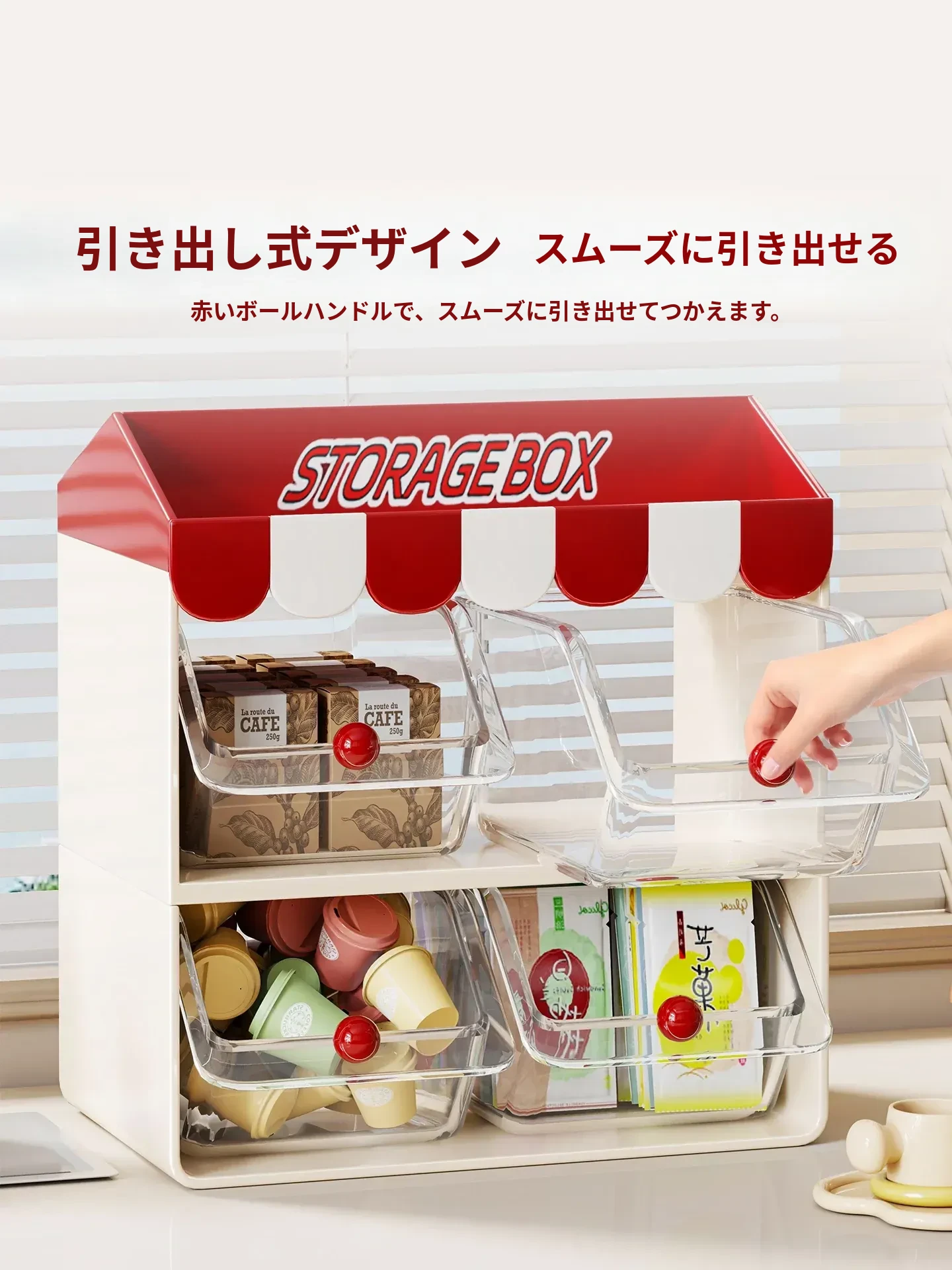 デスクトップ用ティーバッグ収納ボックス - おしゃれなティー・コーヒーカプセル収納ケース!オフィスやティーコーナーに最適な引き出し式茶葉ラックで、整理整頓も簡単!あなたのリラックスタイムをもっと特別に演出します。