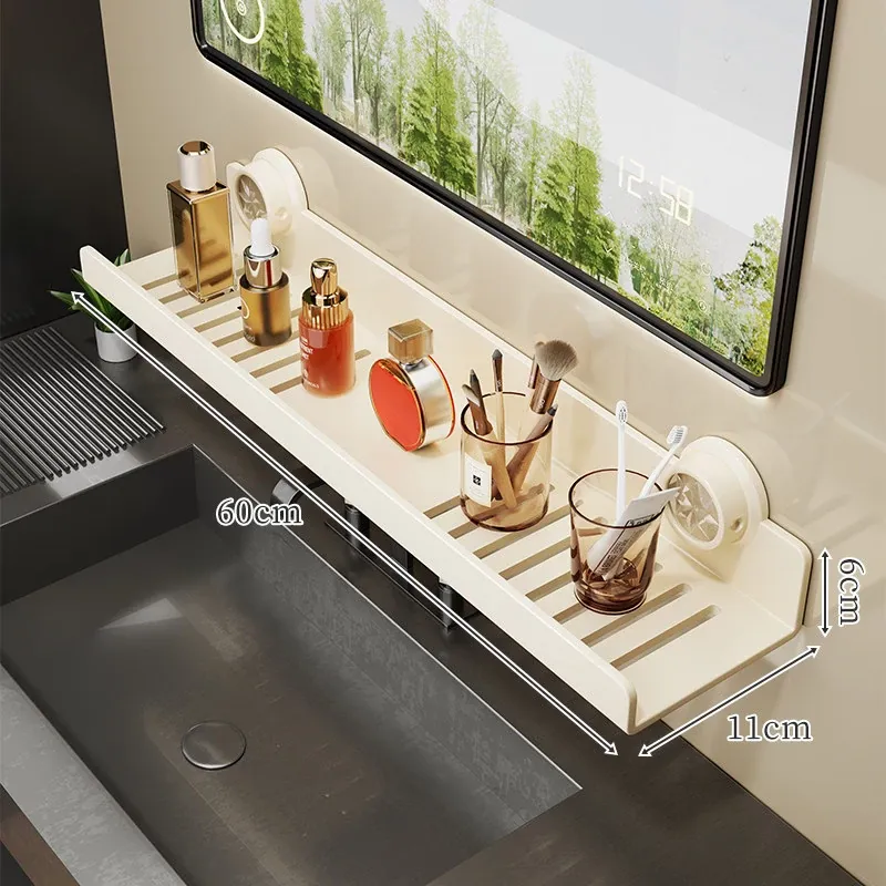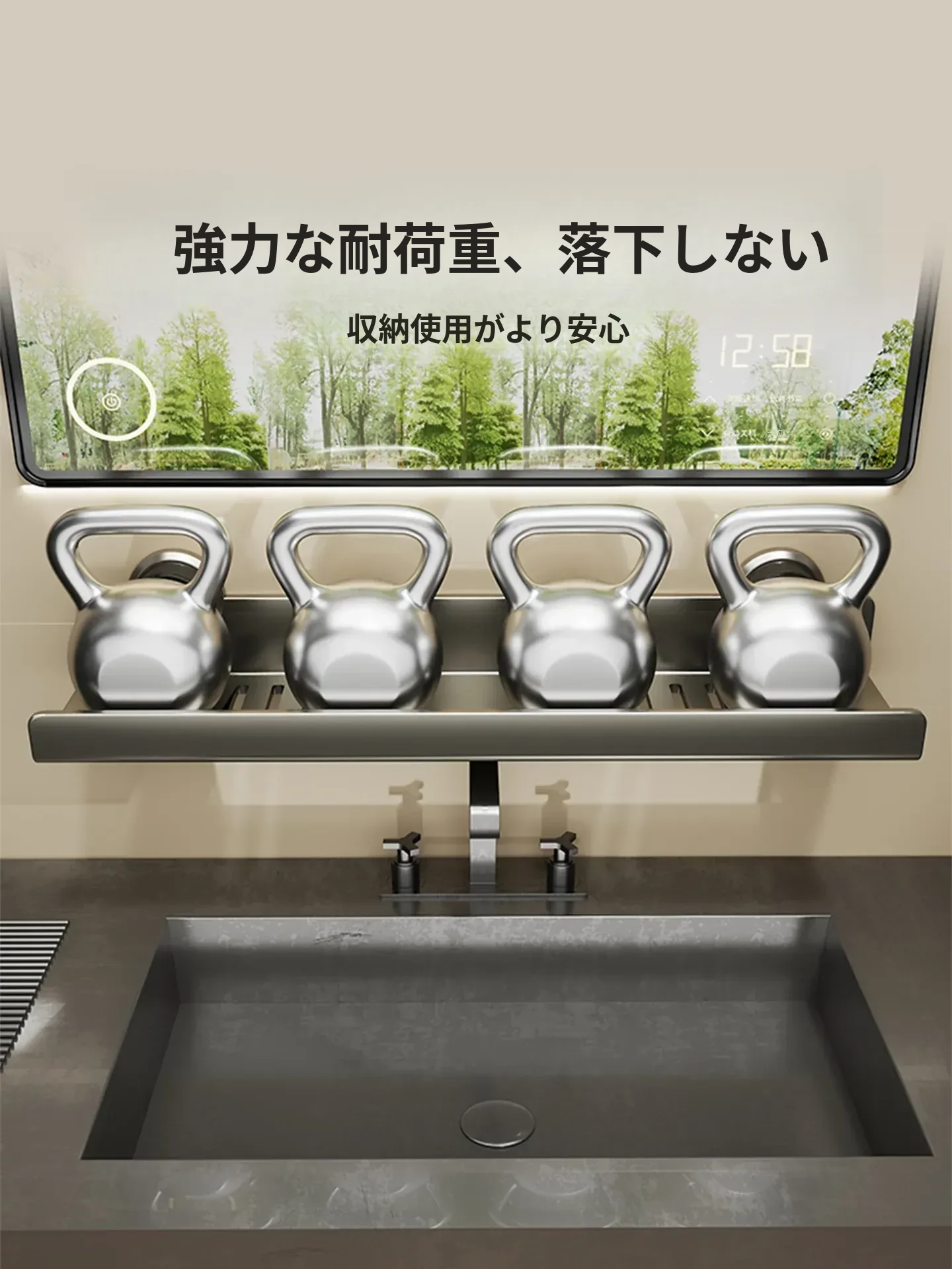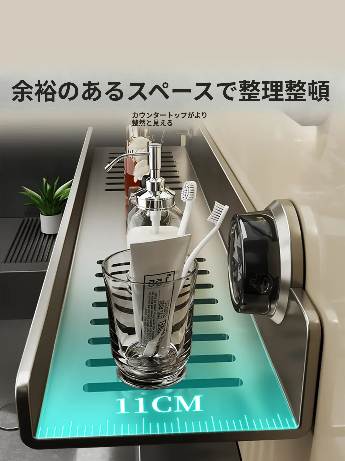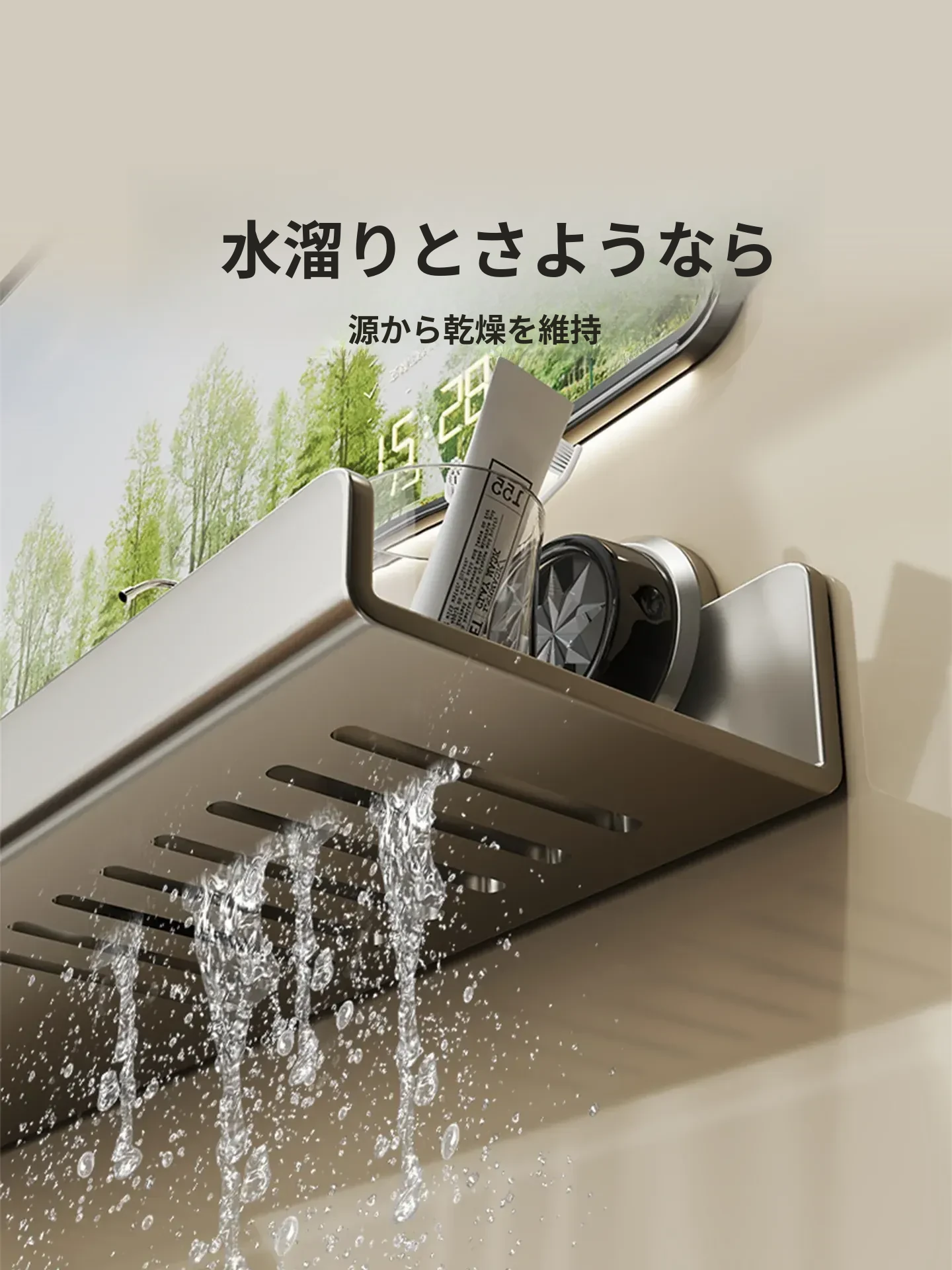吸盤式鏡前トイレ用水栓収納ラック - バスルーム洗面台用、穴あけ不要の壁掛けタイプでスッキリ収納!清潔感あふれる洗面所を実現!