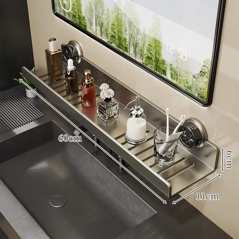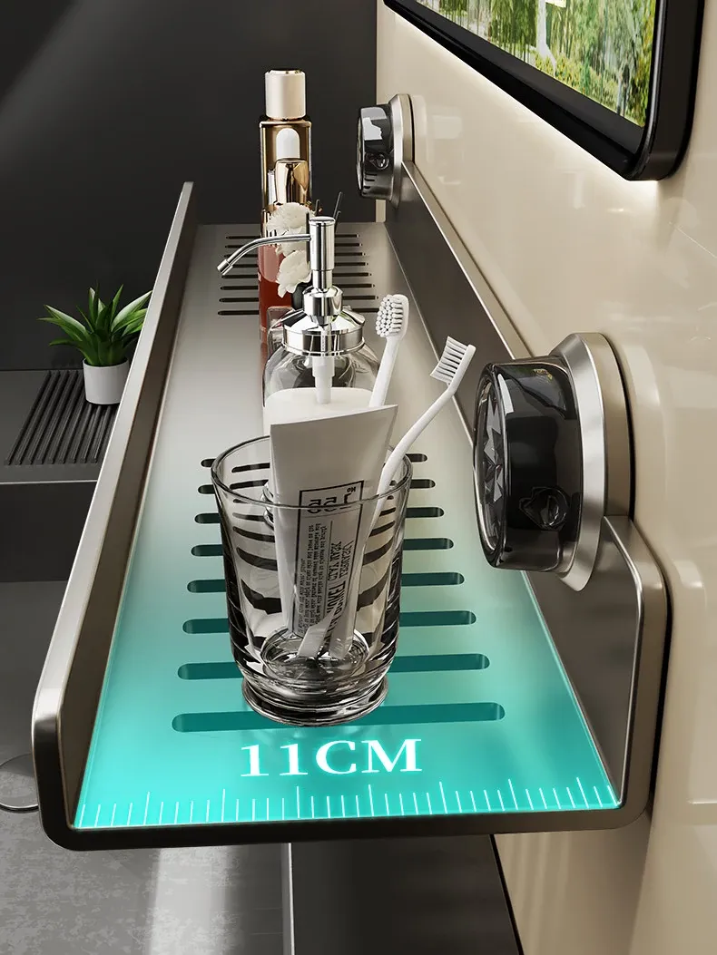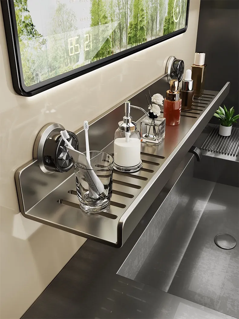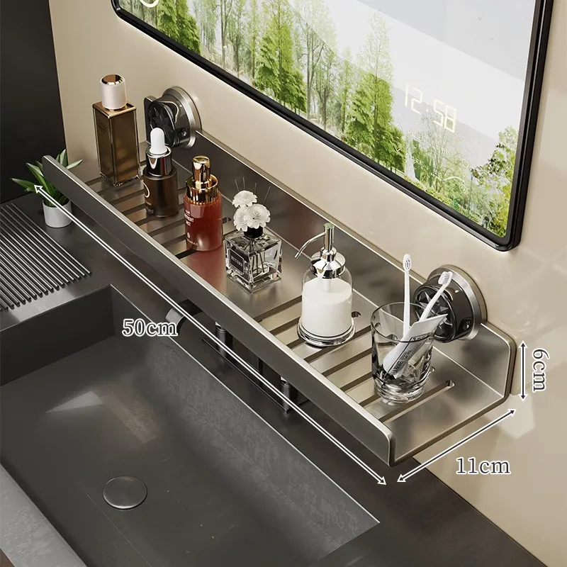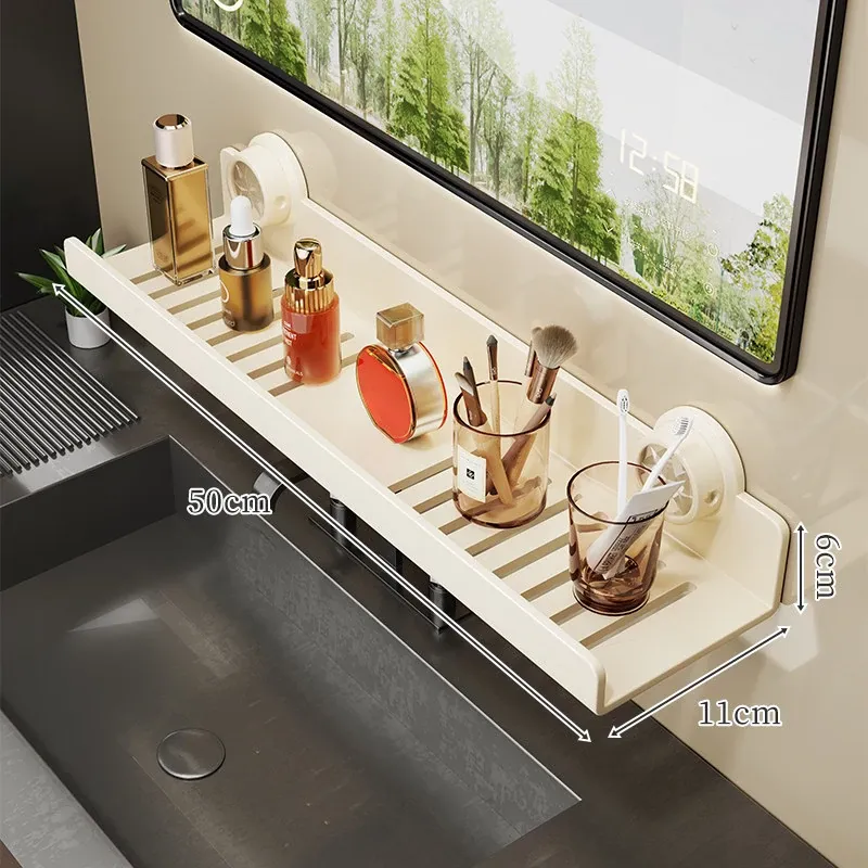 吸盤式鏡前トイレ用水栓収納ラック - バスルーム洗面台用、穴あけ不要の壁掛けタイプでスッキリ収納!清潔感あふれる洗面所を実現!