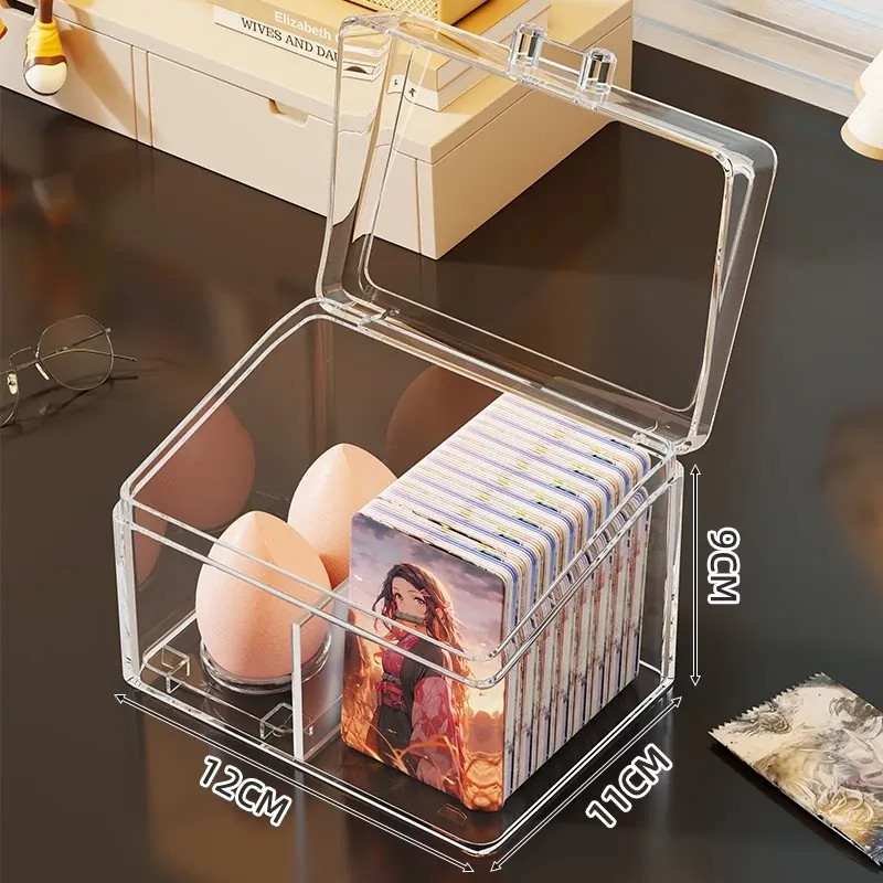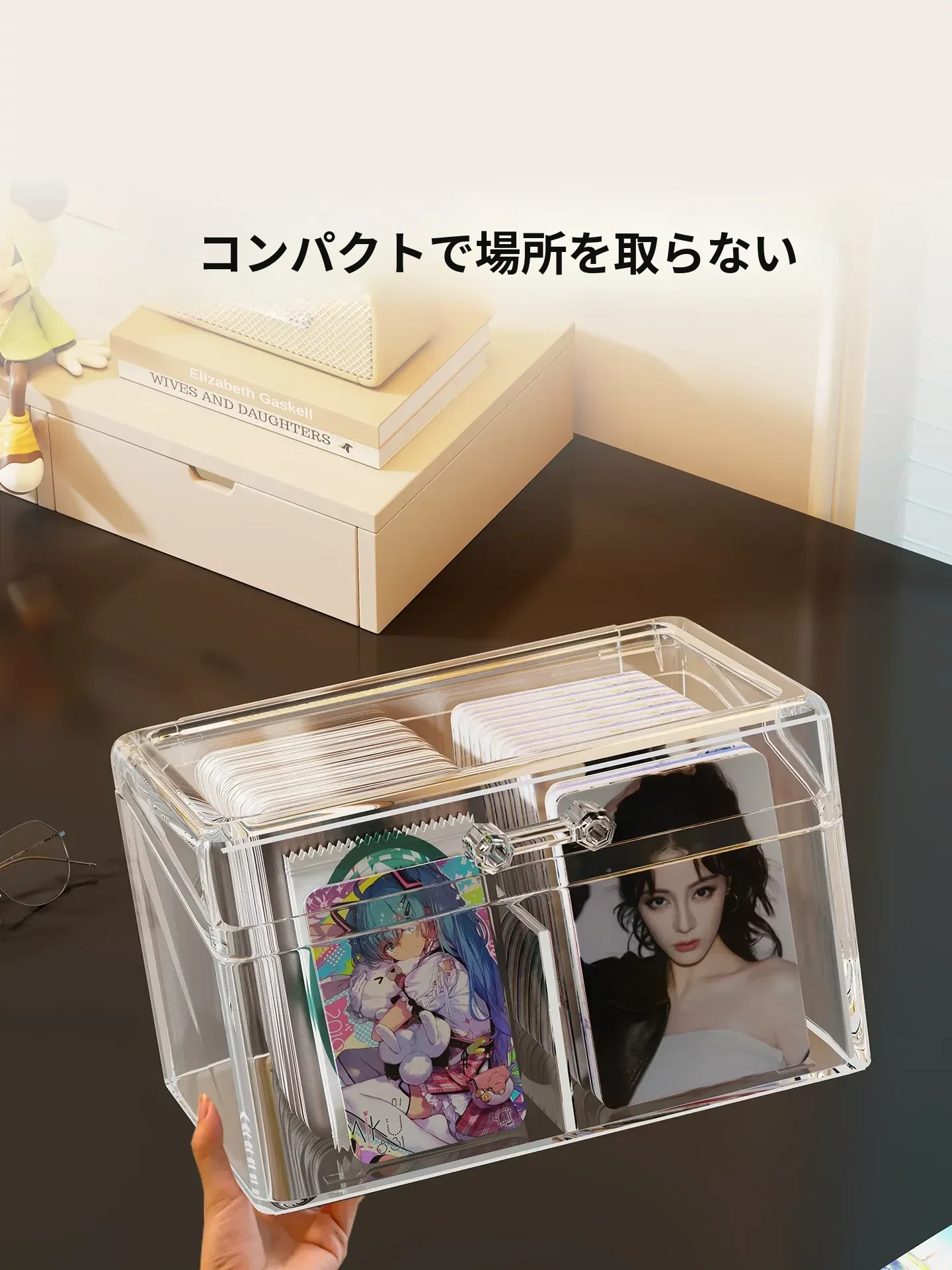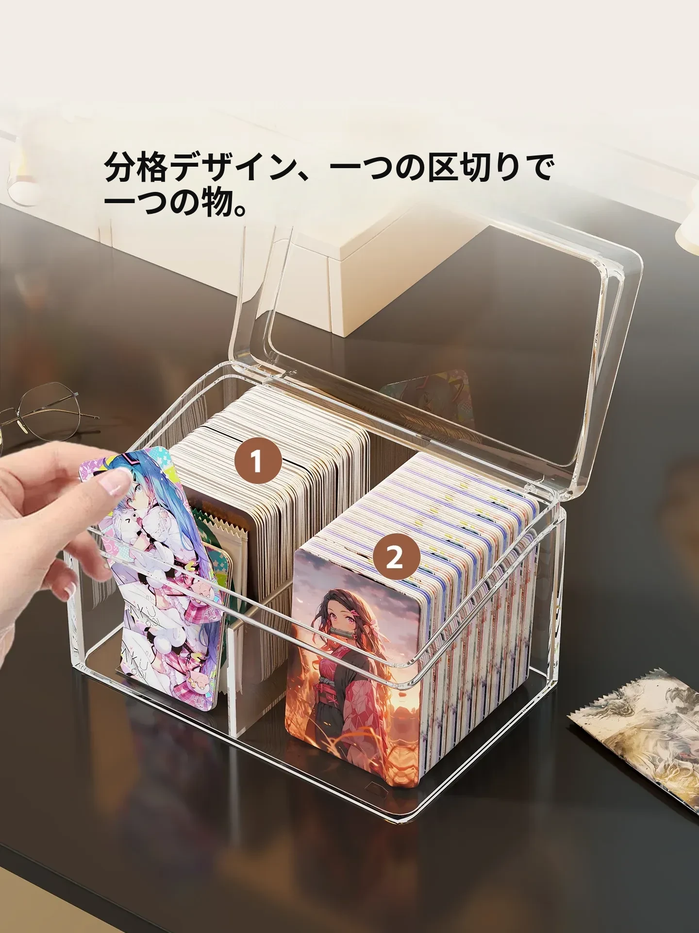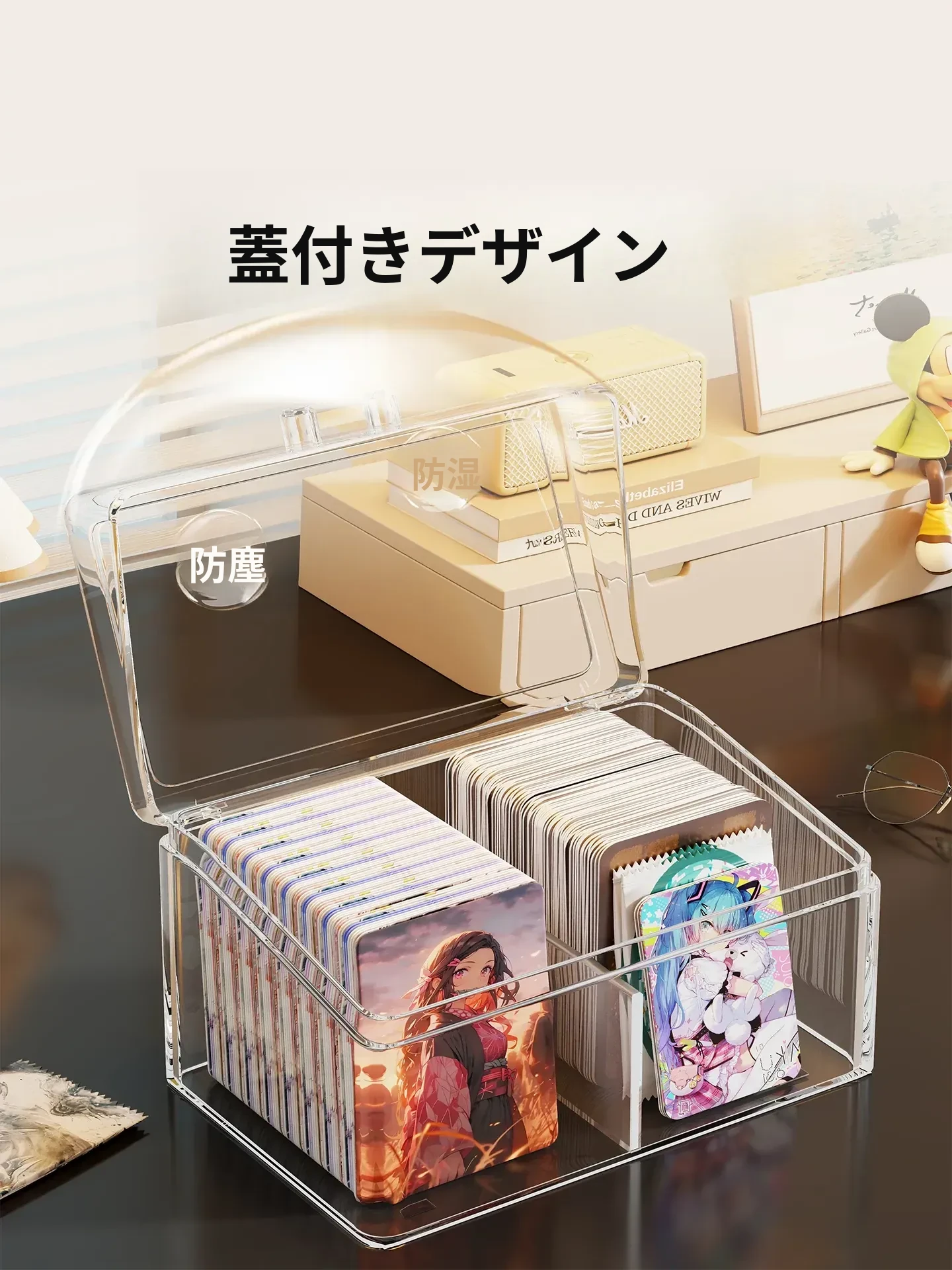 透明デスクカード収納ボックス - カバー付きでホコリを防ぎ、小さなカードをスタイリッシュにディスプレイ!整理整頓に最適な仕切り付き収納ラック。