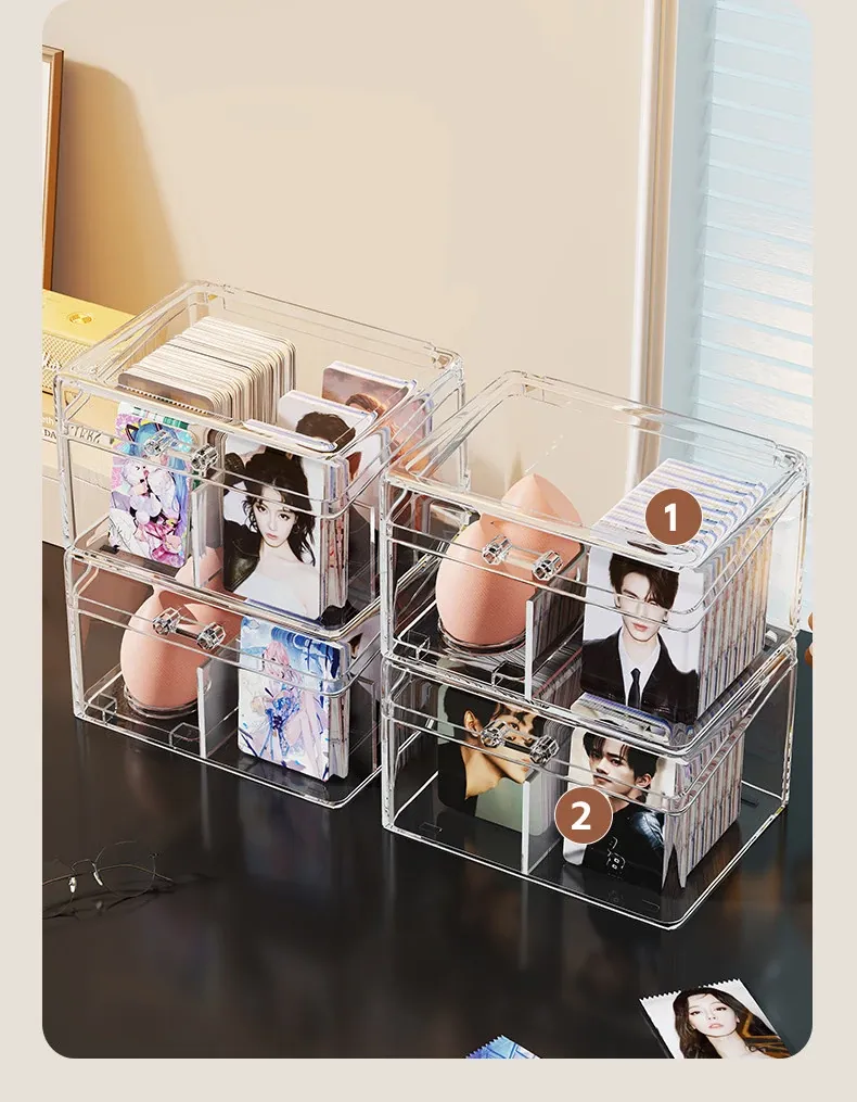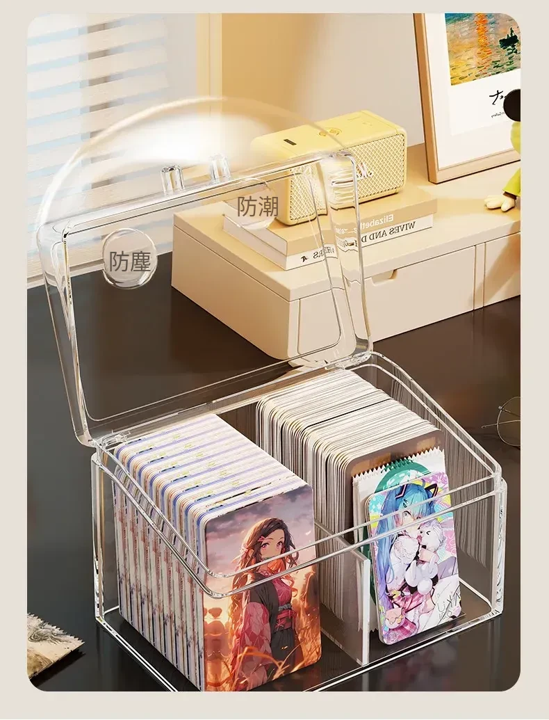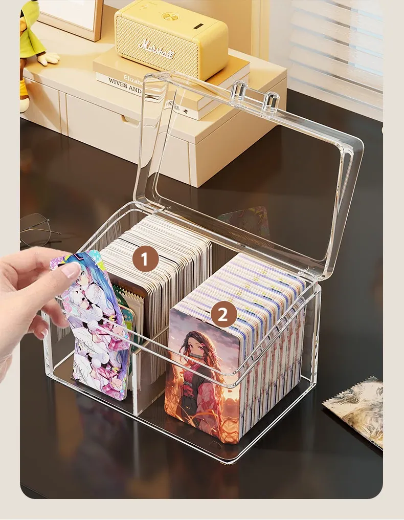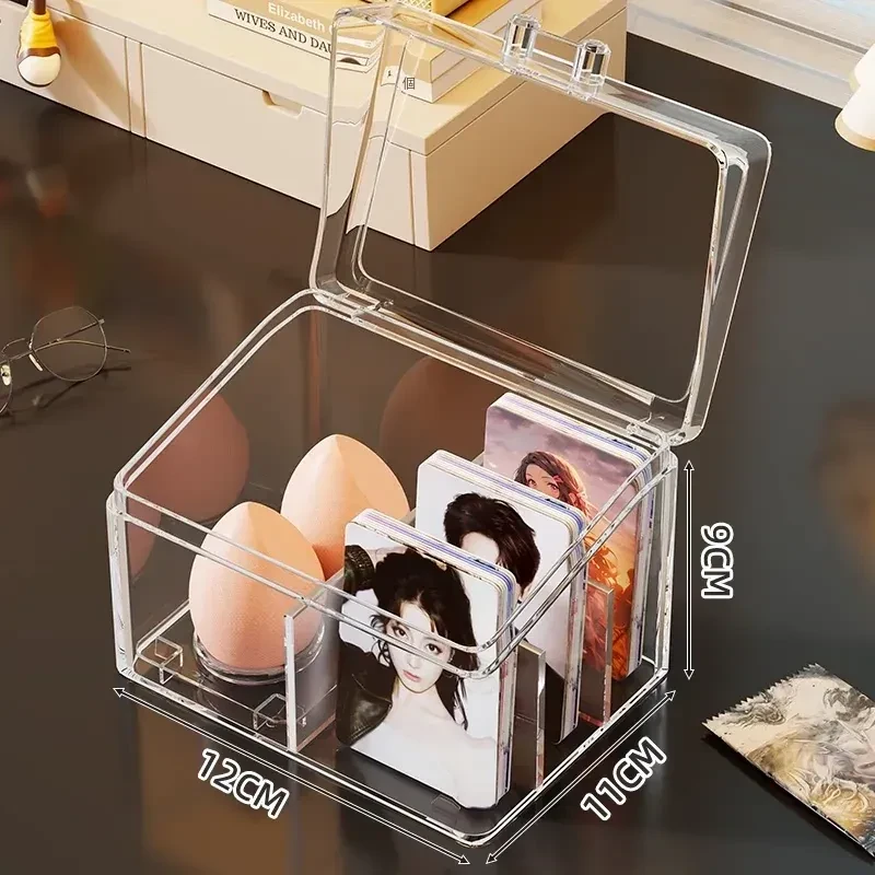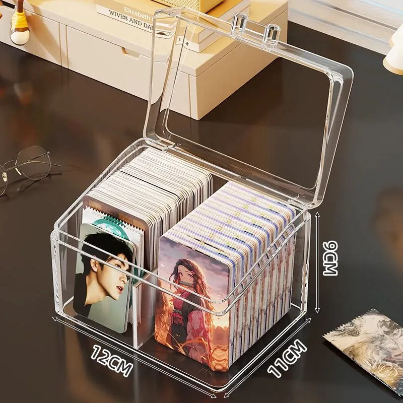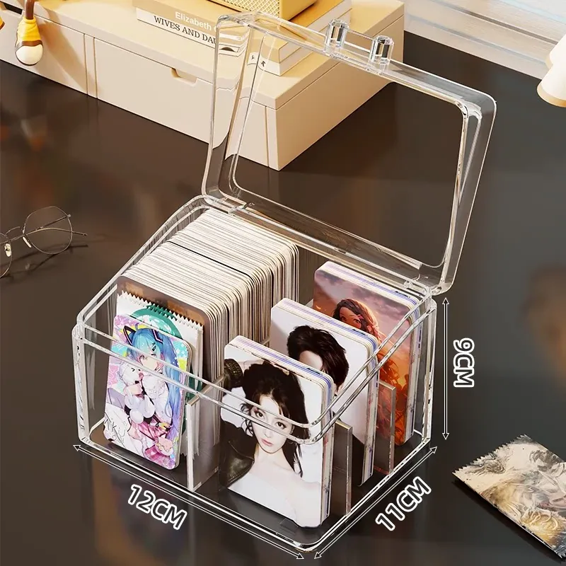 透明デスクカード収納ボックス - カバー付きでホコリを防ぎ、小さなカードをスタイリッシュにディスプレイ!整理整頓に最適な仕切り付き収納ラック。