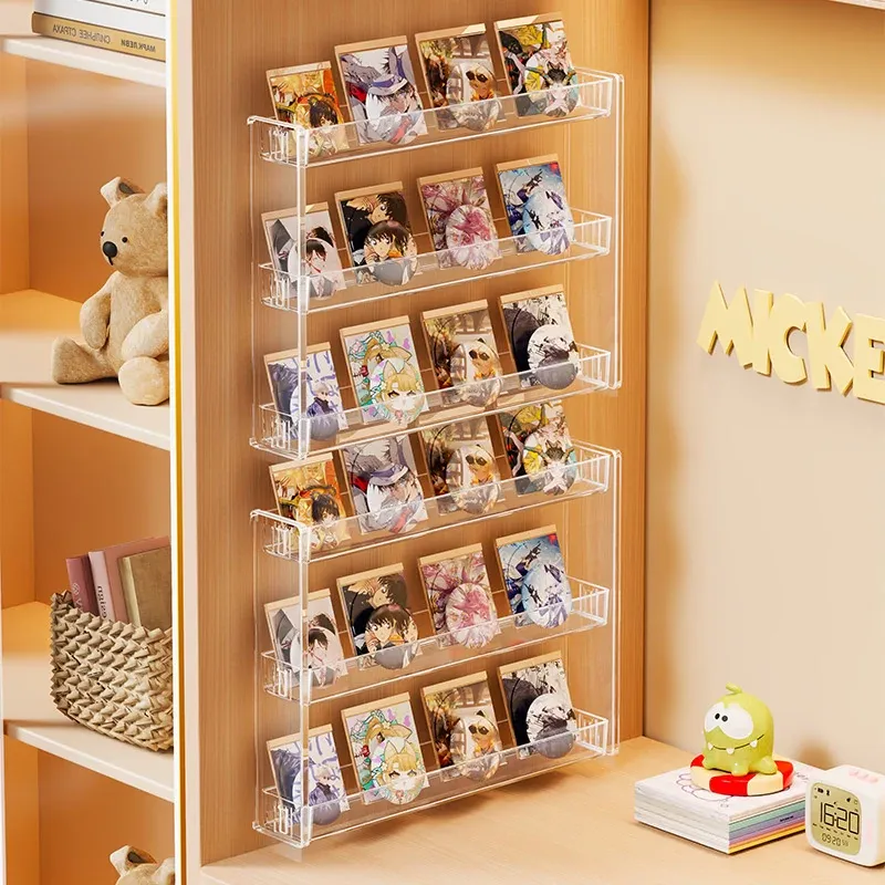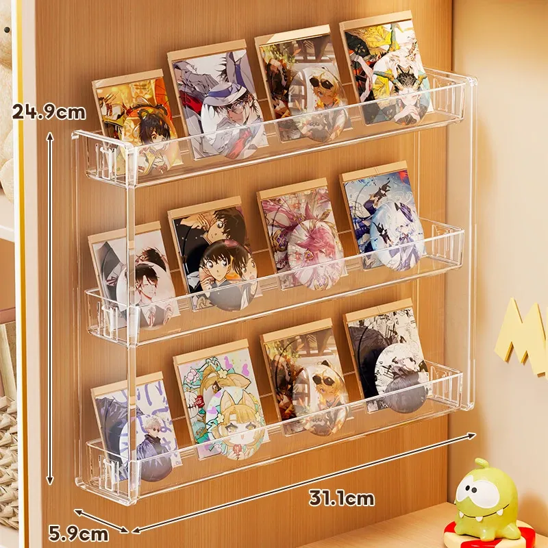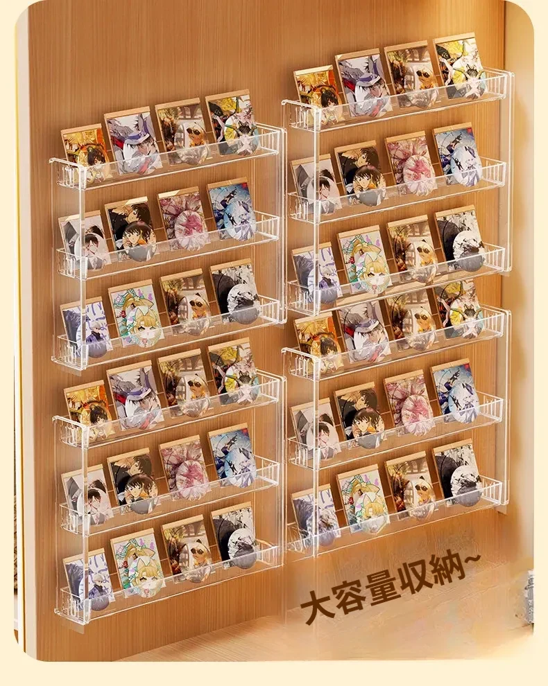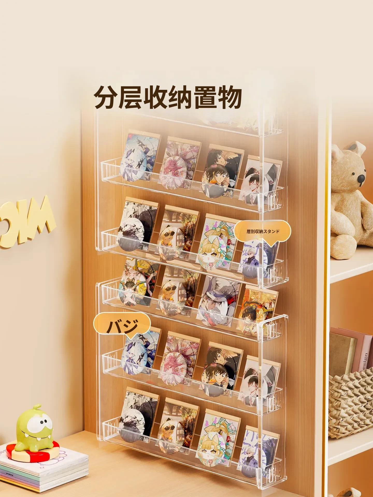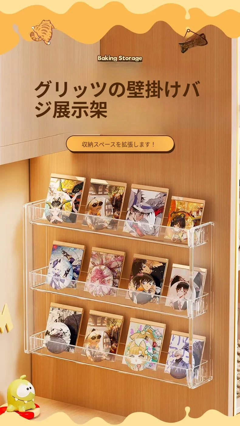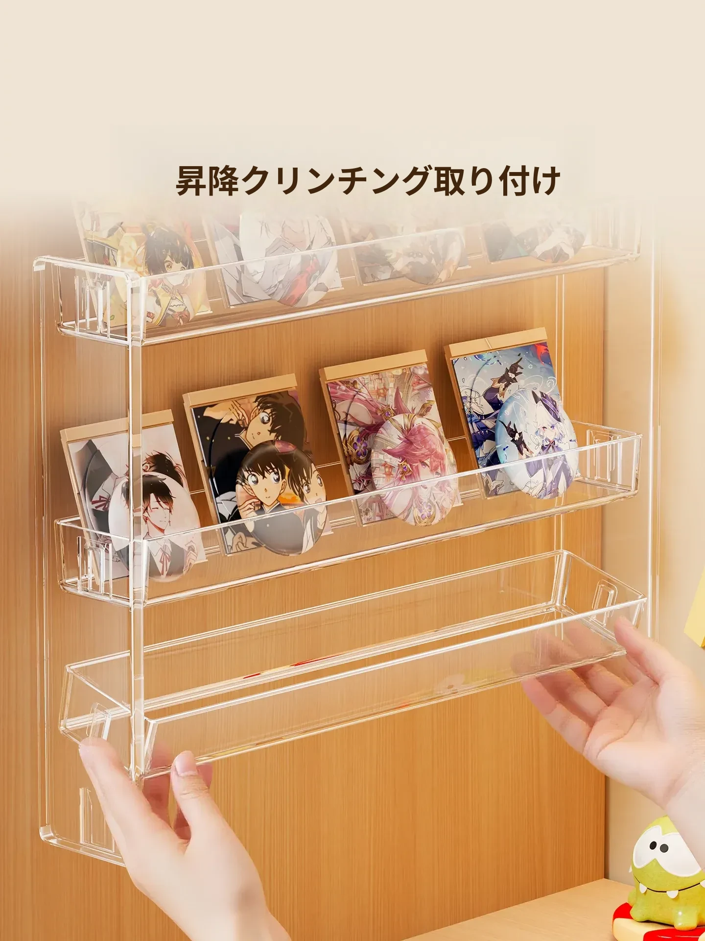透明な谷子収納ボックス付きの多層スタンド展示架!壁面に最適な周辺アイテム収納、バッジやカードをおしゃれに整理!あなたのコレクションを美しく見せる、機能的でスタイリッシュなアイテムです!