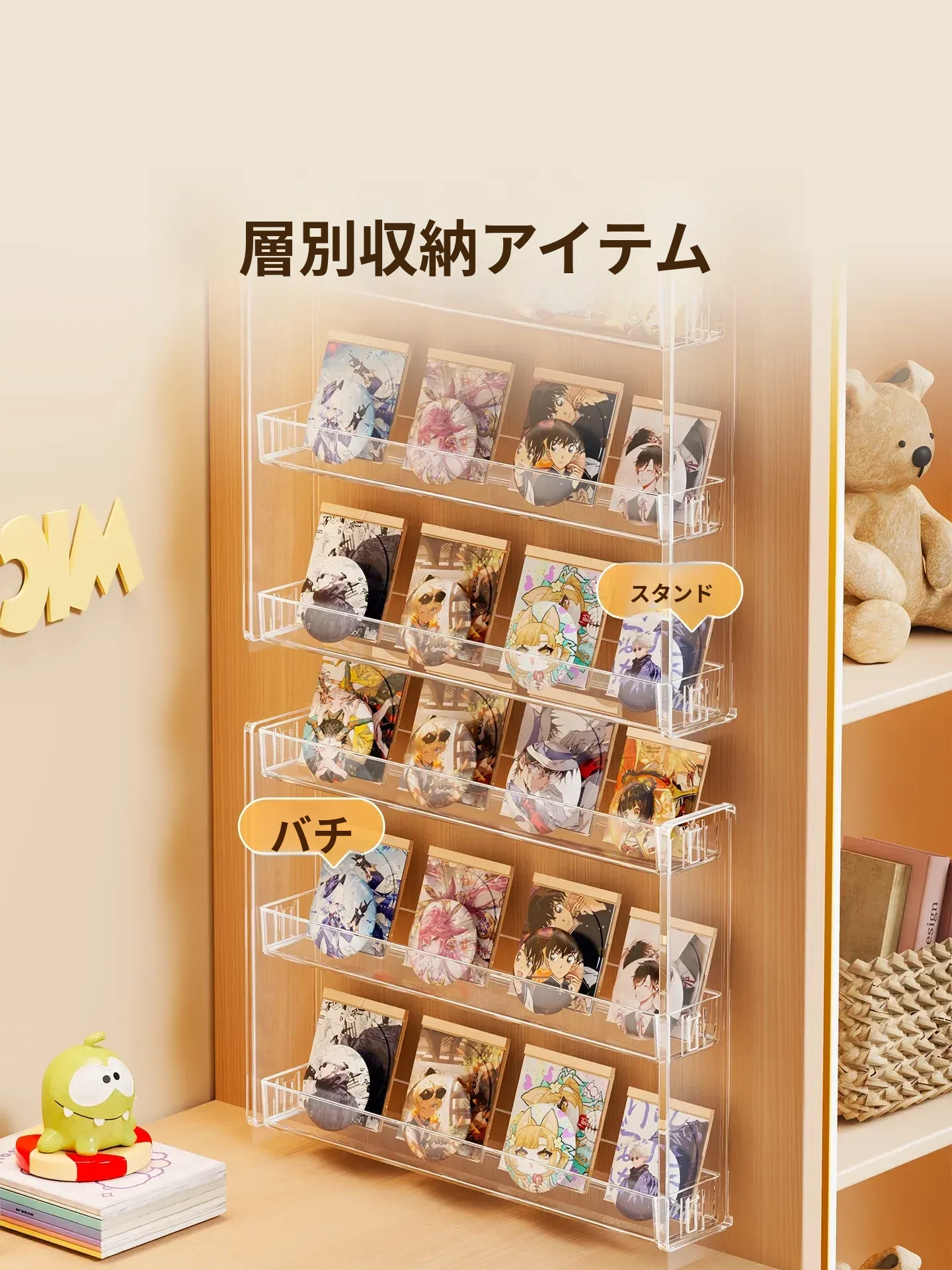 バジ展示スタンドバッジ・谷子ディスプレイラック・周辺カード・ポストカード収納スタンド・透明壁掛け収納ラック - おしゃれで機能的な収納ソリューション!お部屋をスッキリ整理し、あなたの大切なアイテムを美しく魅せる!