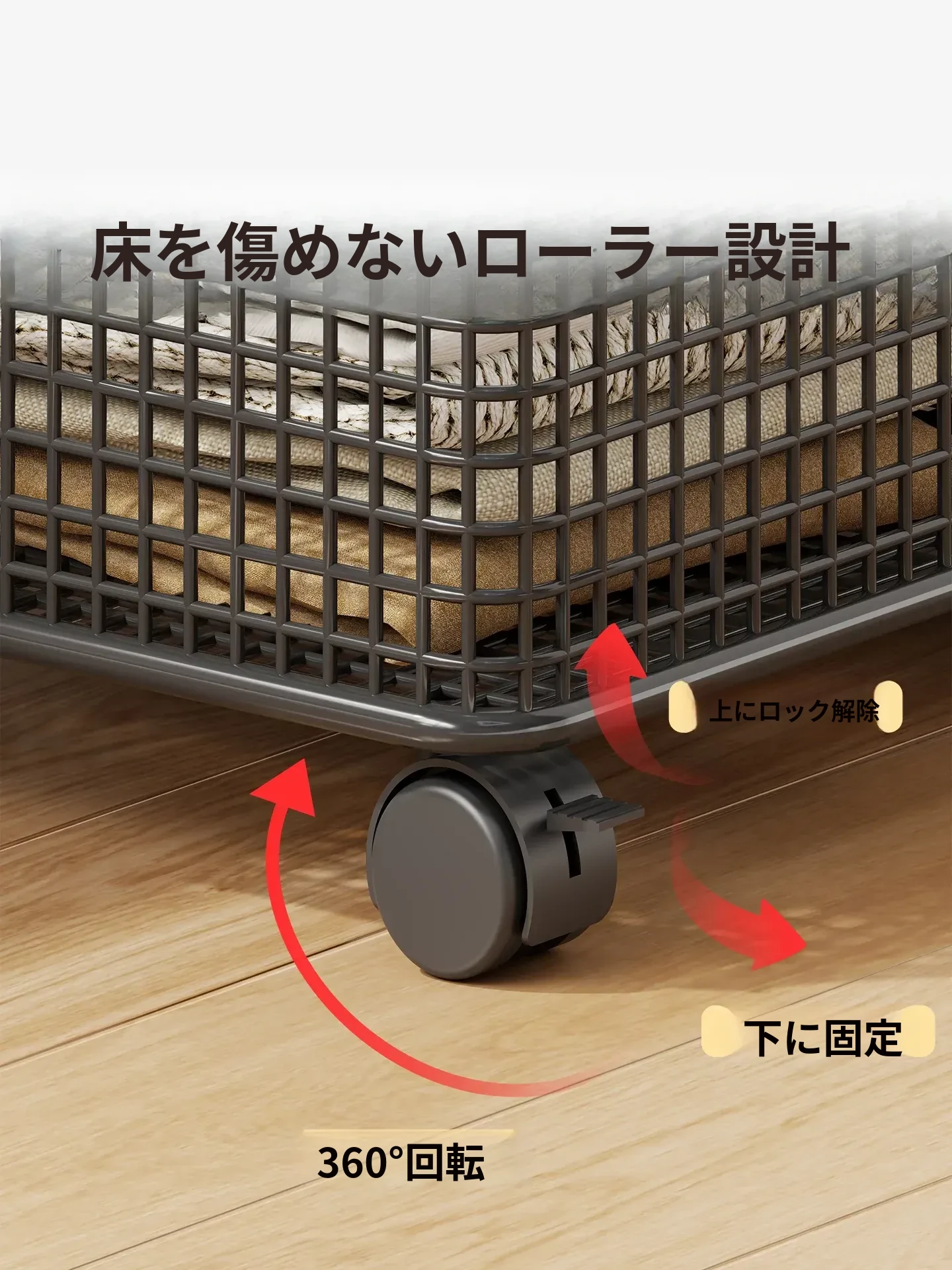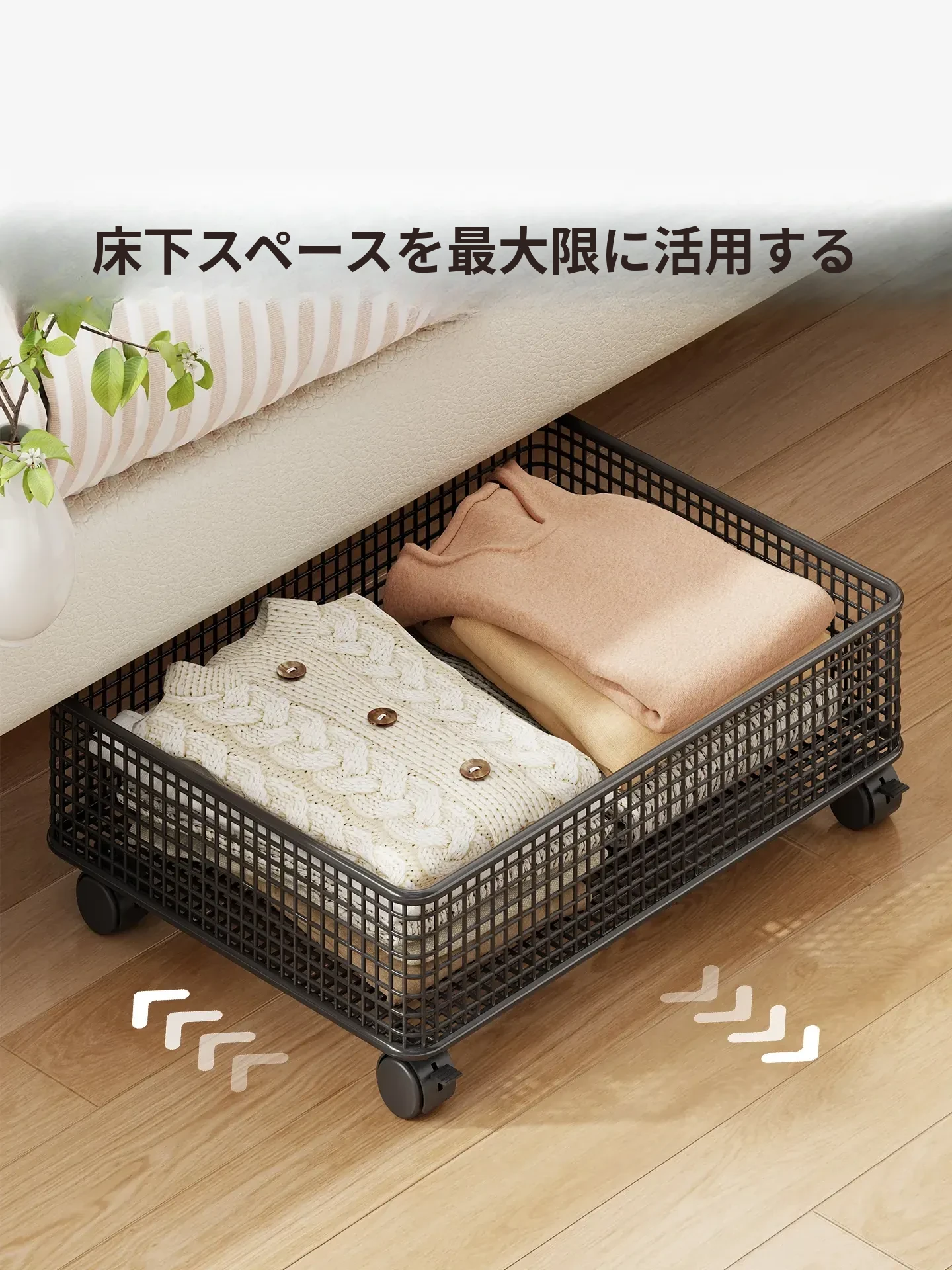 キャスター付き収納ボックス - 衣類や靴をスッキリ整理!ベッド下にぴったりフィットするスライド式のフラットデザインで、簡単に出し入れ可能。お部屋をすっきり整えて、快適な空間を手に入れましょう!