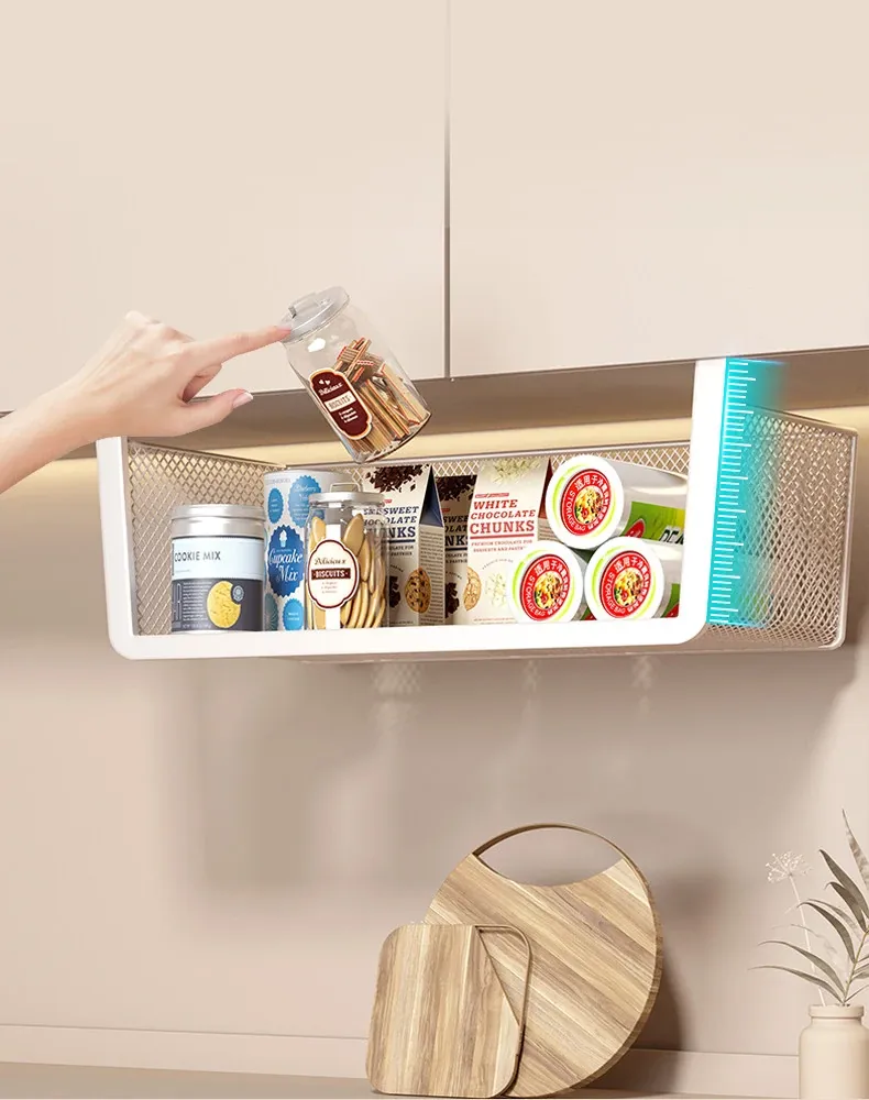 キッチンやデスク周りをスッキリ整理!多段式ハンギング収納ラック - 寝室やリビングにぴったりの便利な棚、スナックや小物を簡単に収納できます。