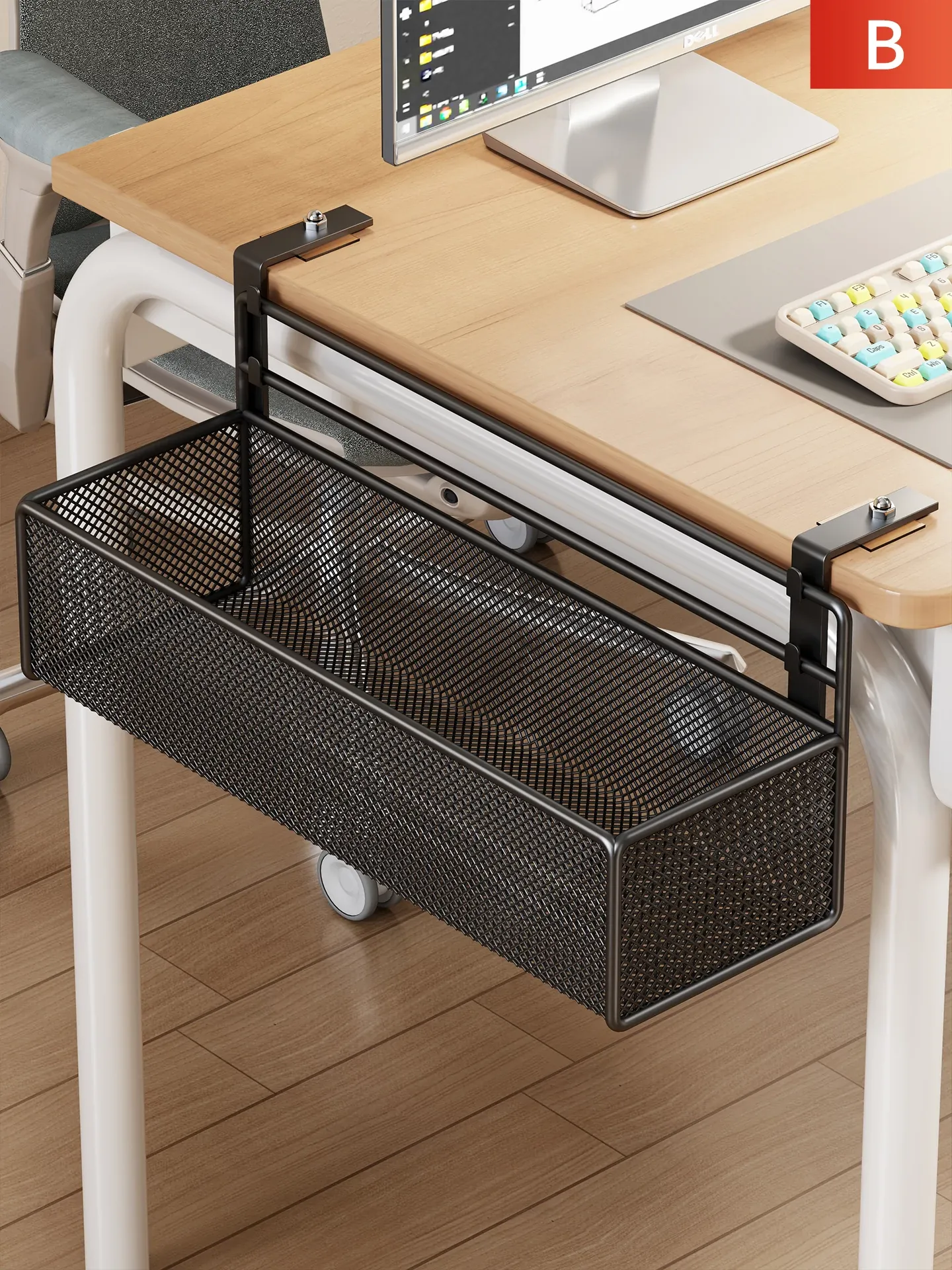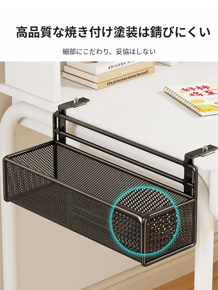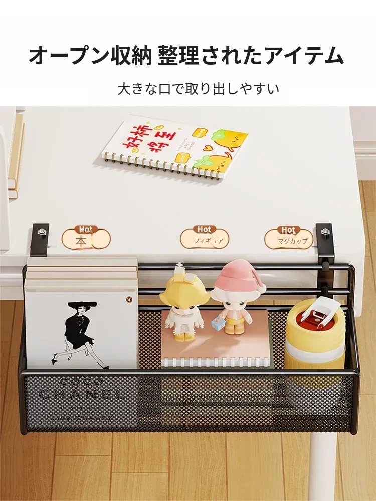 オフィスデスク下収納ラック|吊り下げ式大容量多機能ストレージ|シンプルで穴あけ不要の整理整頓ラックで、スッキリ快適な作業環境を実現!