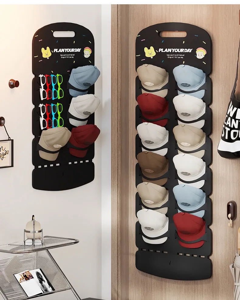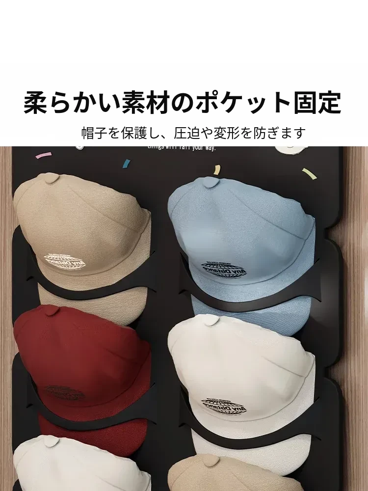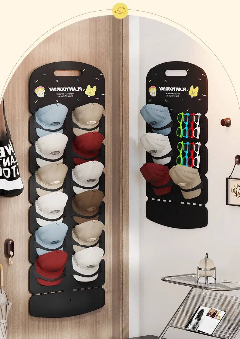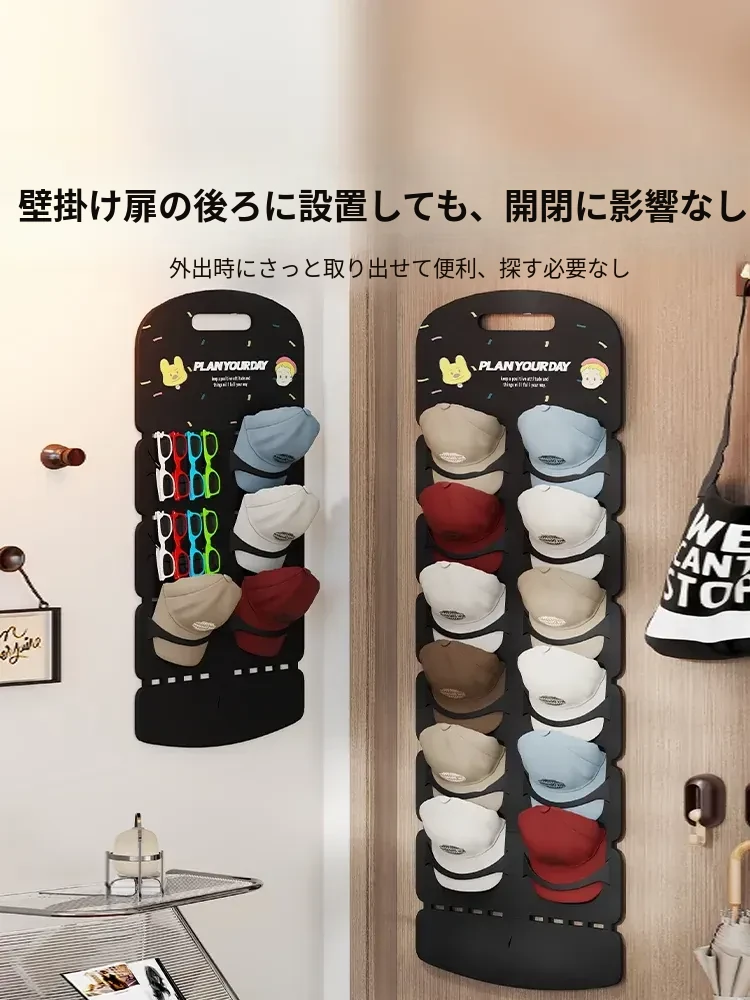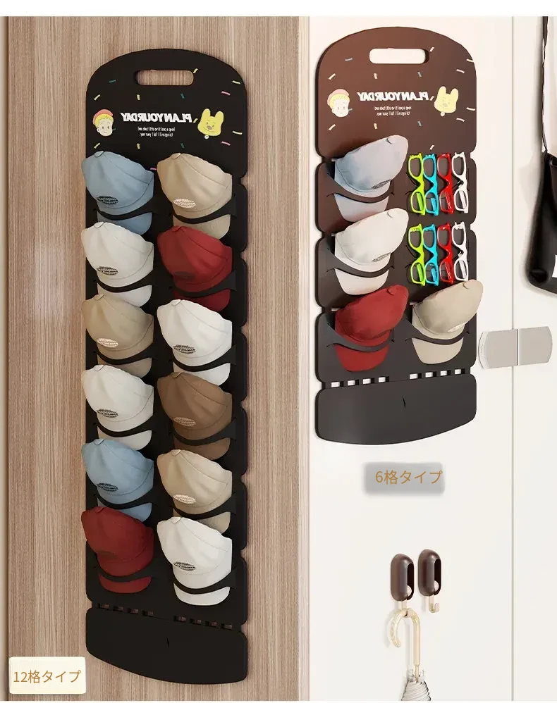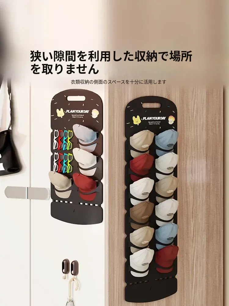 扉の後ろに掛ける帽子収納ラック!変形防止の神アイテム、野球帽やベレー帽も美しくディスプレイ。家でスッキリ整理整頓しよう!