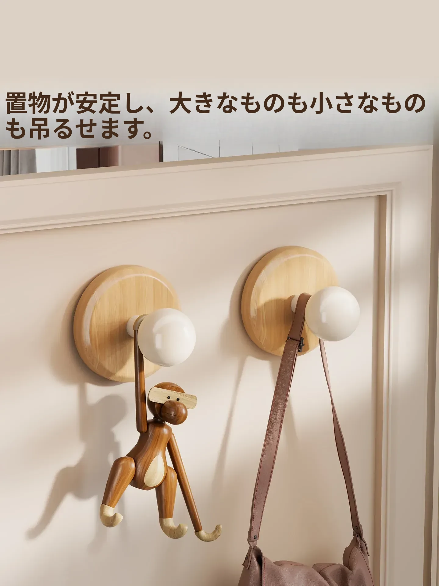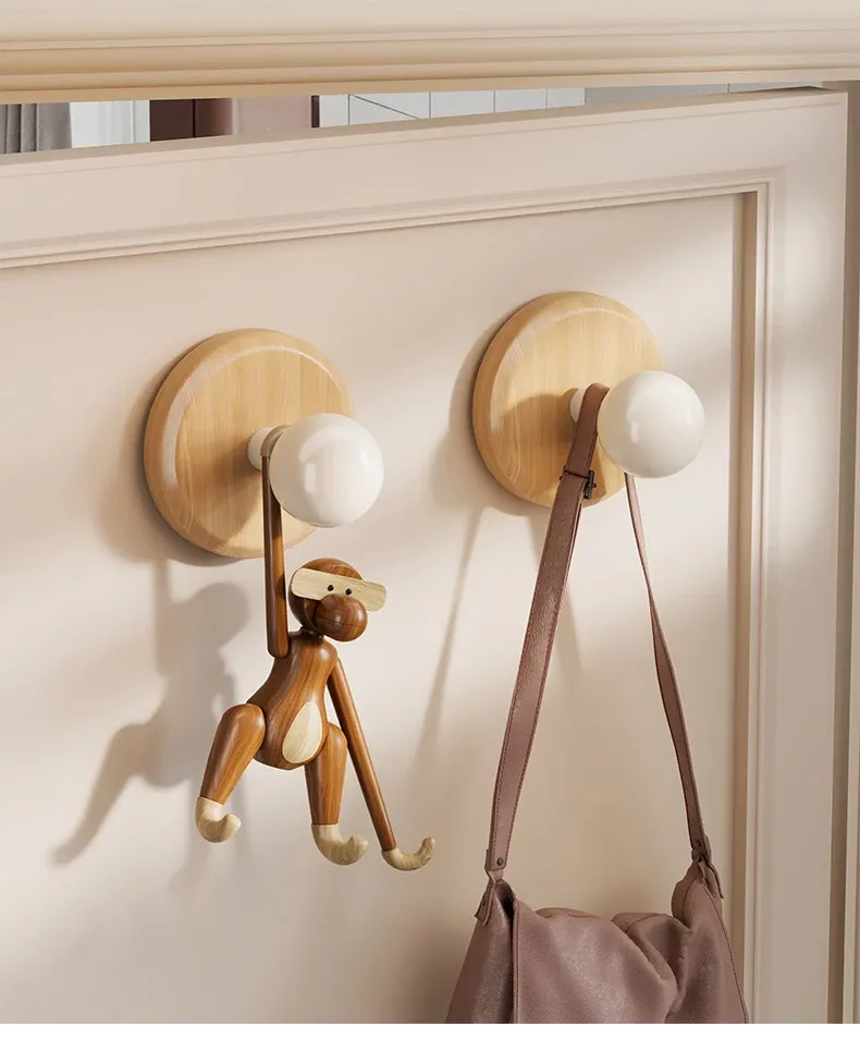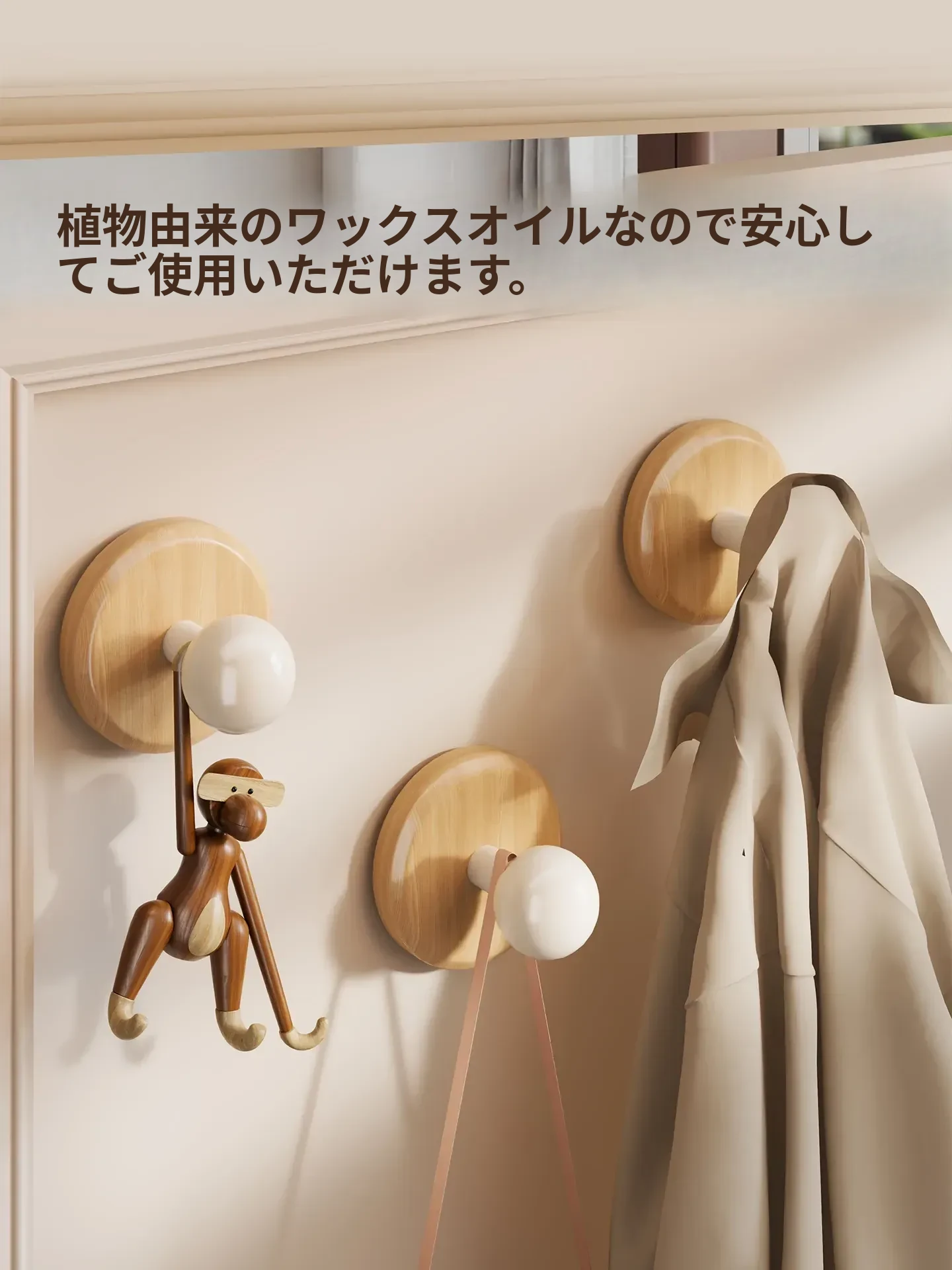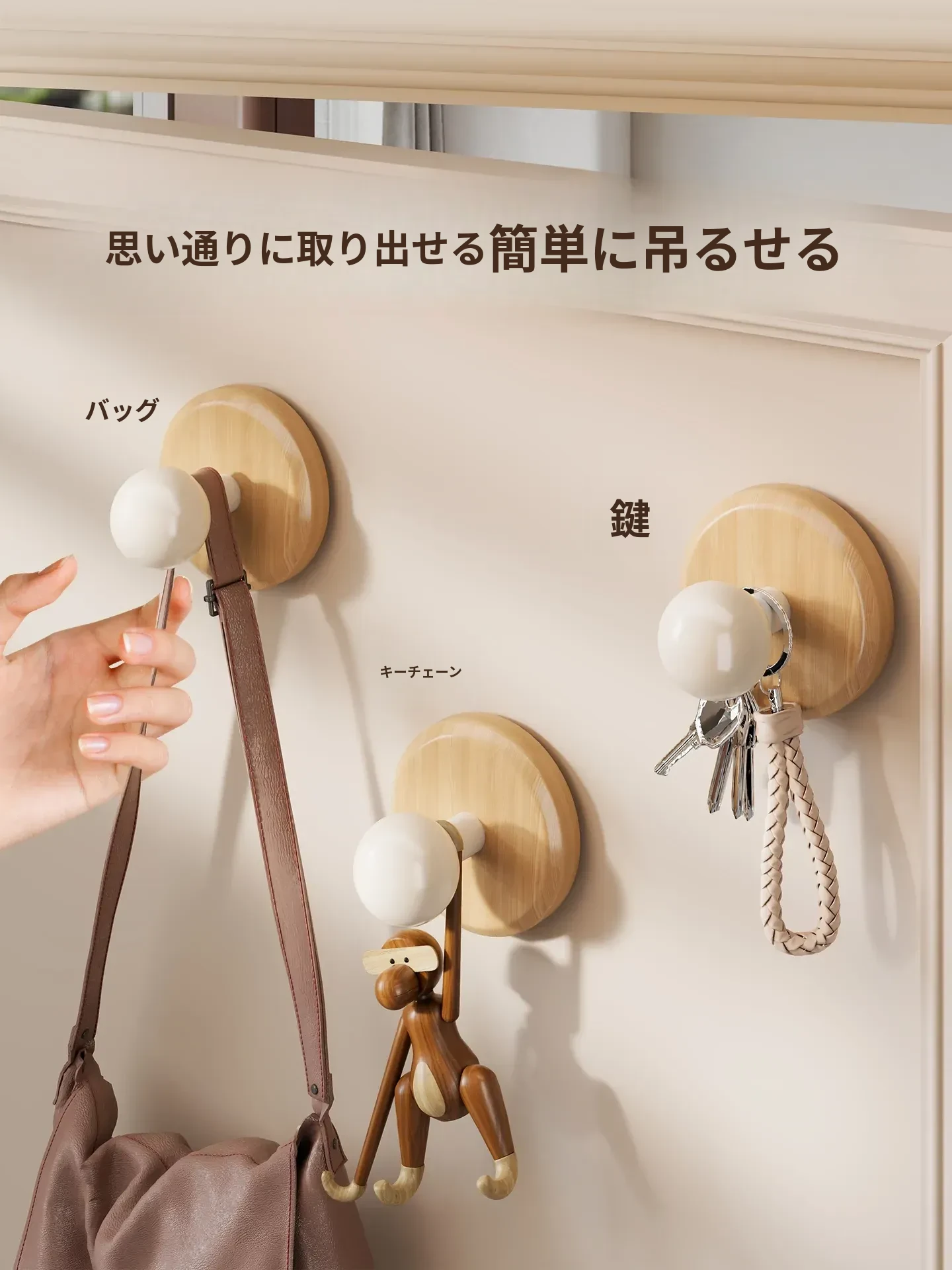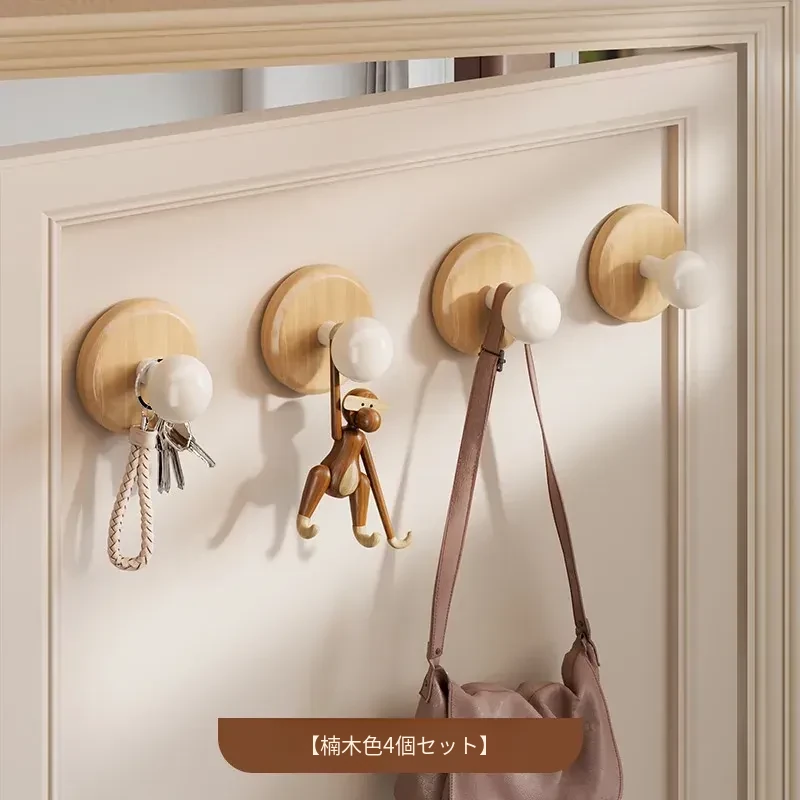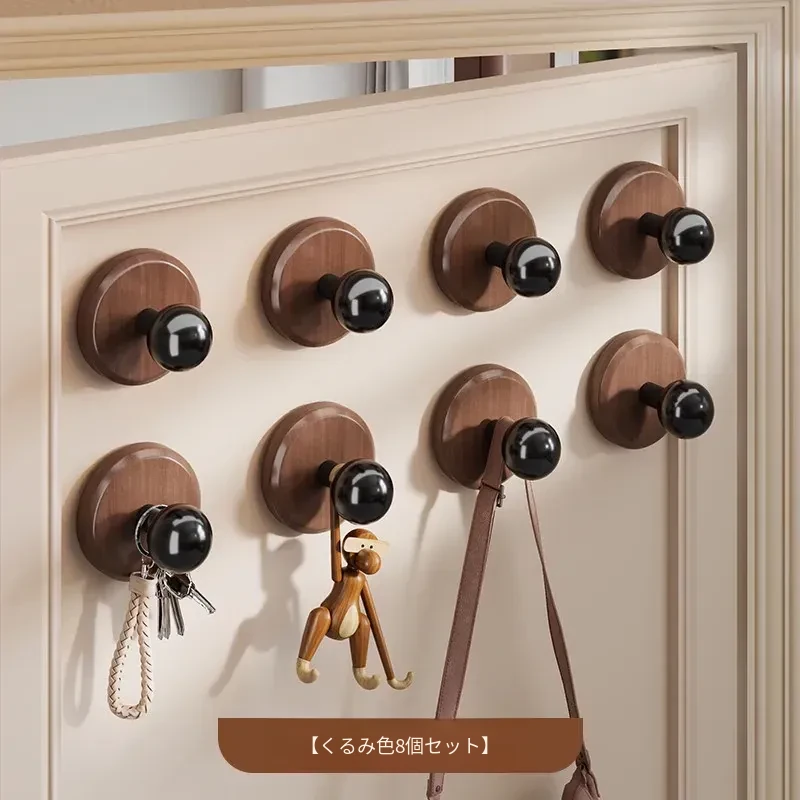 壁掛けフック 木製フック(クルミ・ブナ材)穴あけ不要!帽子や鍵をスッキリ収納できる粘着式で、寝室やリビングに最適!おしゃれで便利なアイテムを今すぐ手に入れよう!