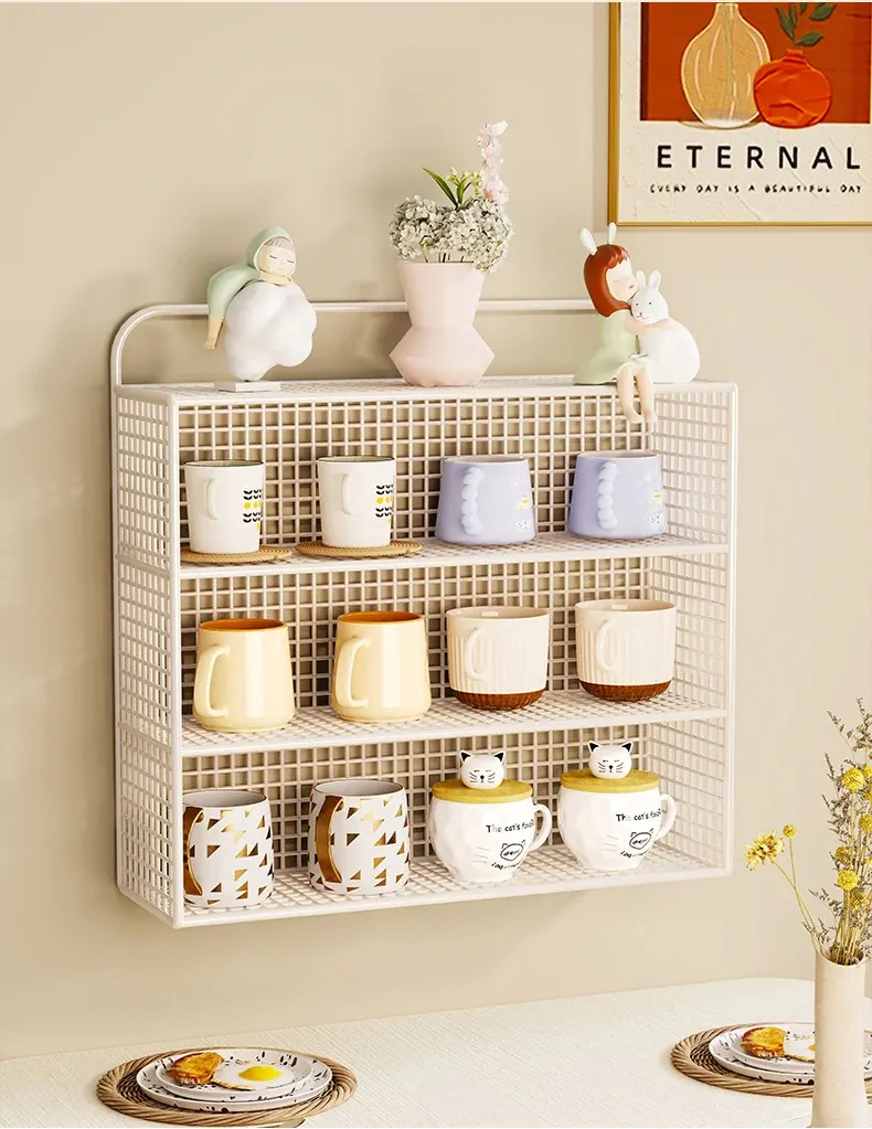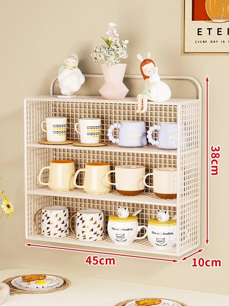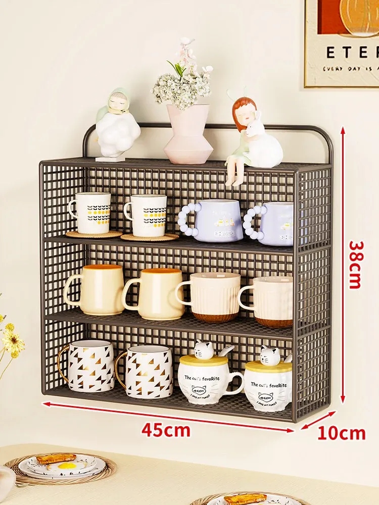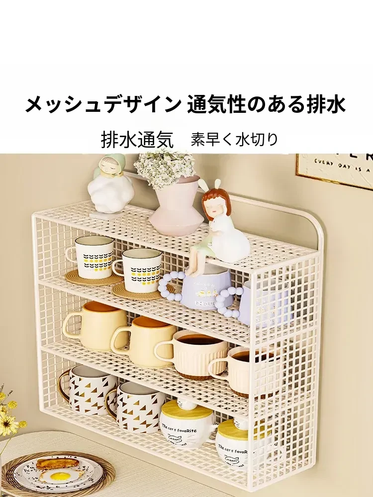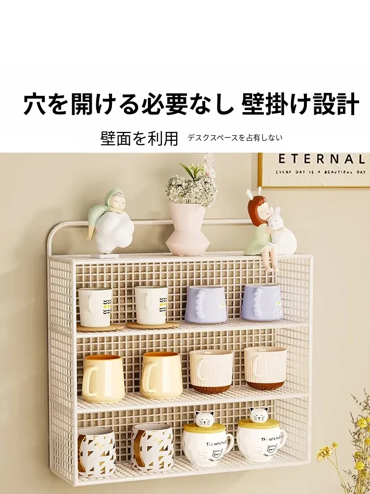 壁掛け収納棚 マルチカップオーガナイザー 多層コップ整理ラック ティータイムに最適な分別カップスタンド おしゃれなティーカップ収納ボックス