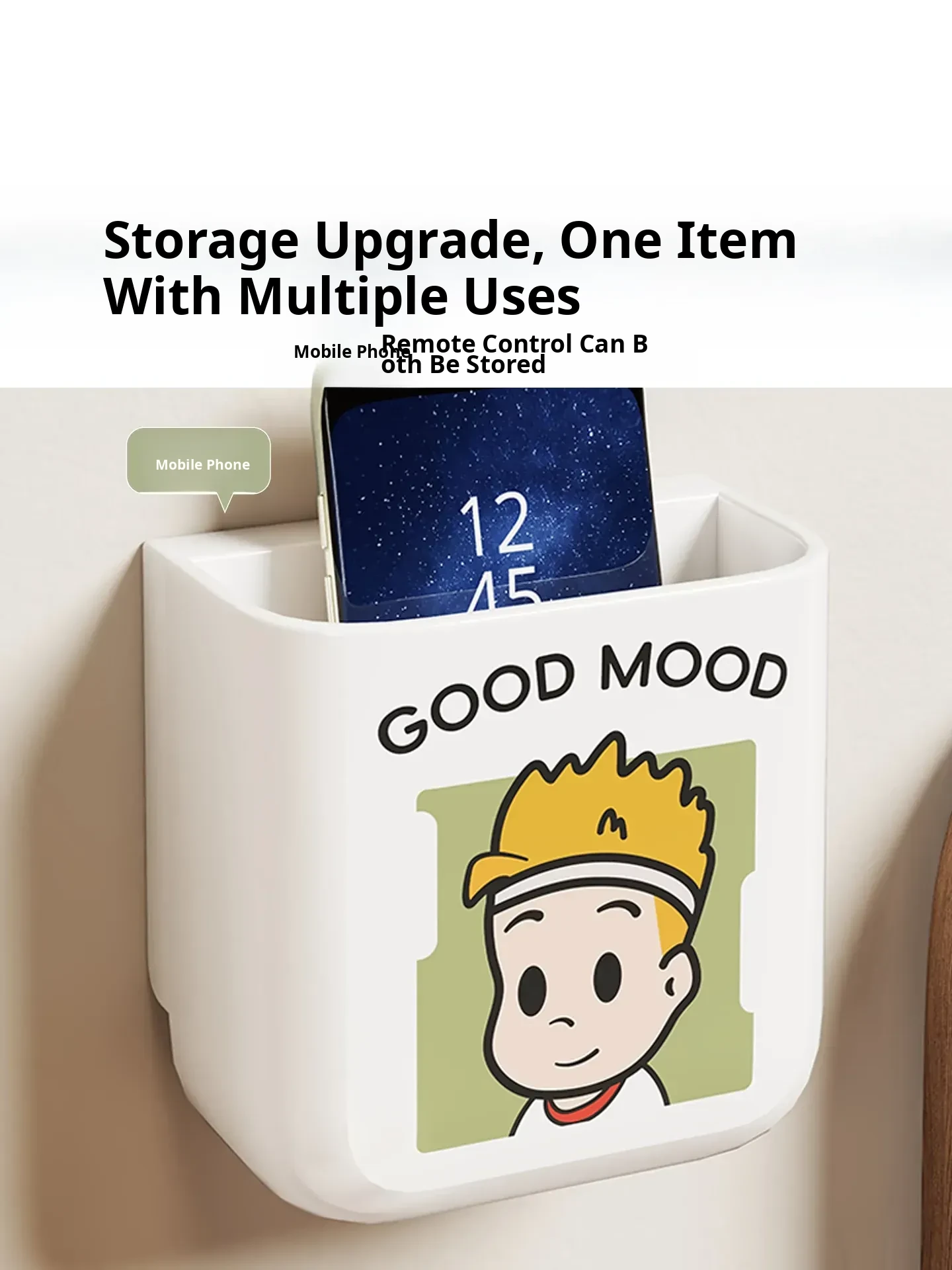 Wall-Mounted Remote Control Storage Box for TV, Air Conditioner, and Curtain – No Drilling Required, Space-Saving Organizer for Clothes Hangers and Remotes