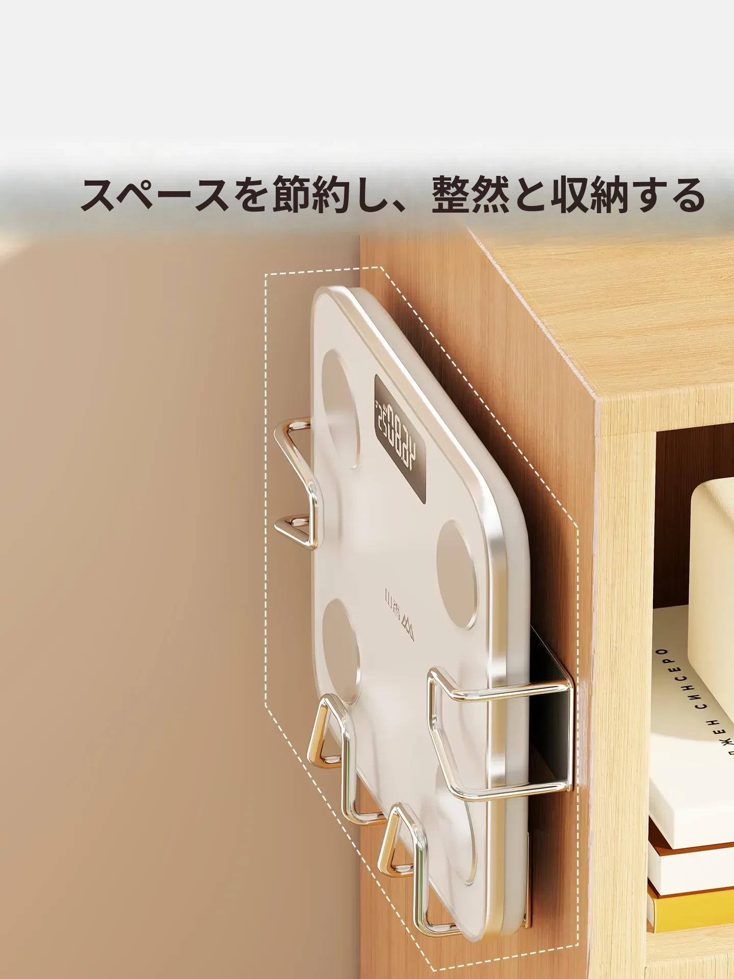 体重計収納ラック 壁掛けタイプ 取り付け不要!電子体重計をスッキリ収納できる魔法のようなアイテム!ドアの裏やキャビネットの横に最適な多機能ディスプレイラック。