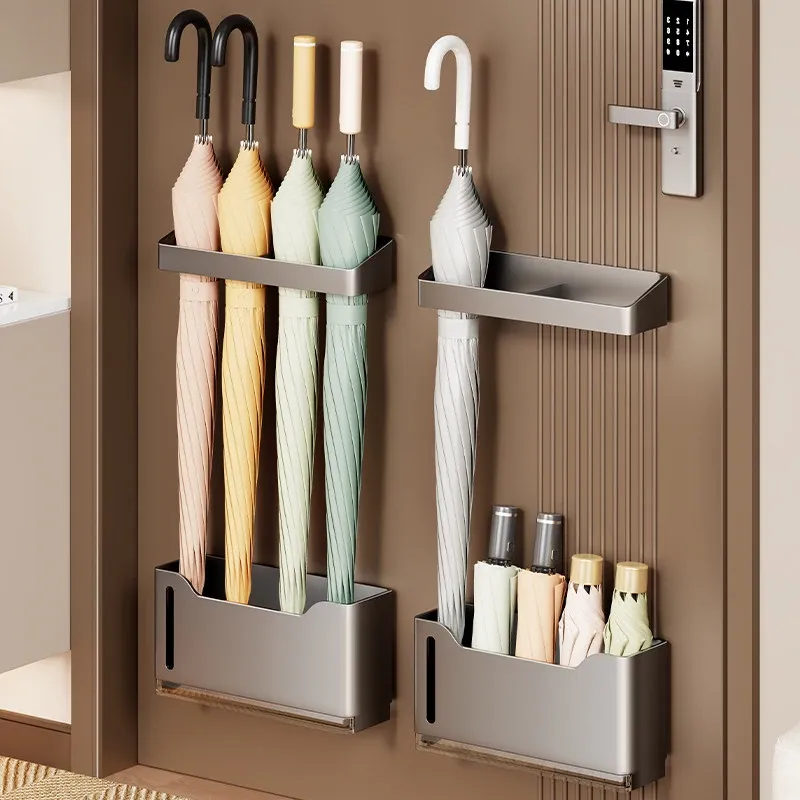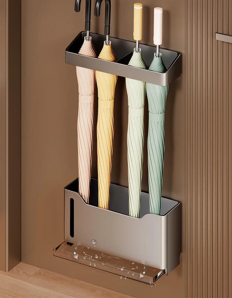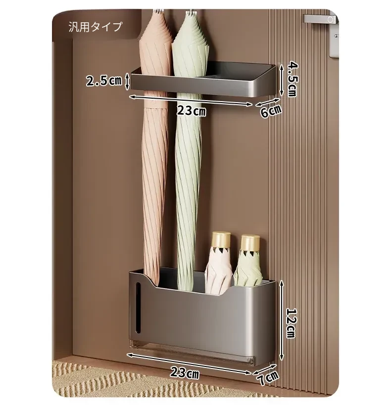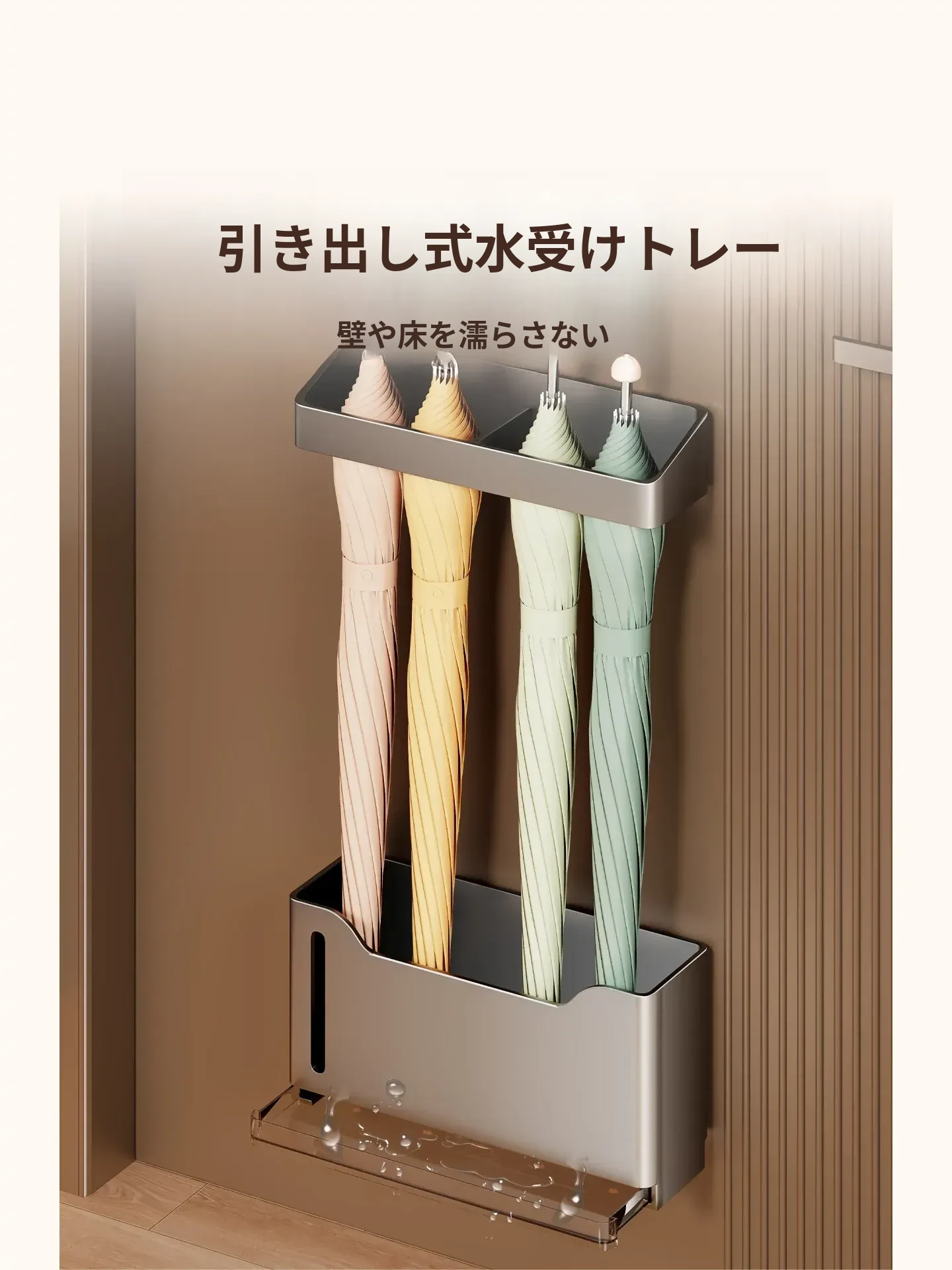 雨具収納ハンガー 壁掛けタイプ - 家庭用玄関スッキリ整理!水切り機能付きで濡れた傘も安心収納!入門口やドアの後ろに最適な傘置き場。シンプルでスタイリッシュなデザインで、あなたの玄関をおしゃれに演出します。