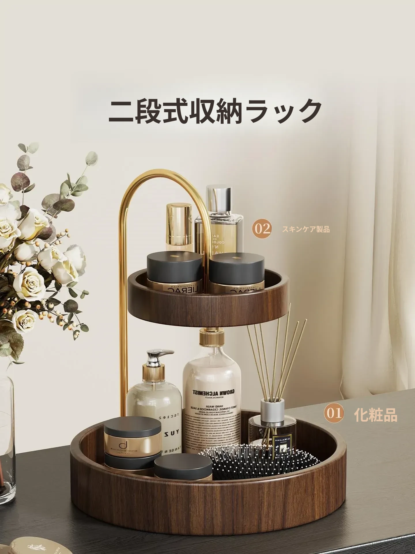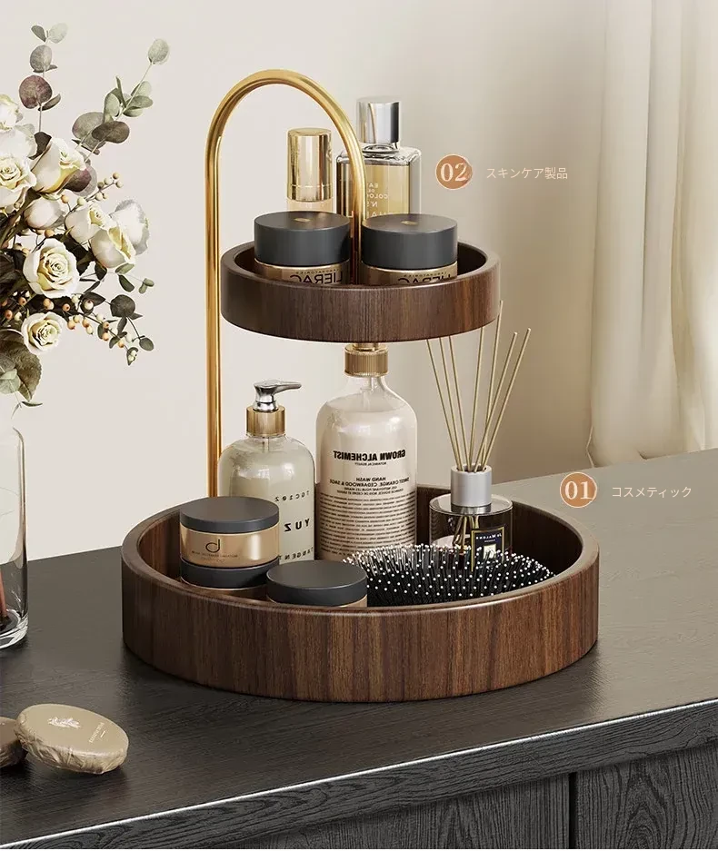 天然木製化粧品収納ボックス - デスク上をスッキリ整理!口紅やスナック、スキンケアアイテム、マスク、香水もしっかり収納。おしゃれで機能的な整理整頓の必需品!