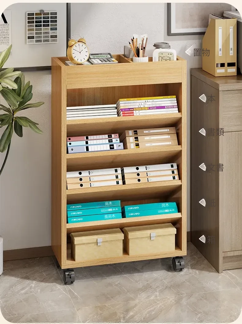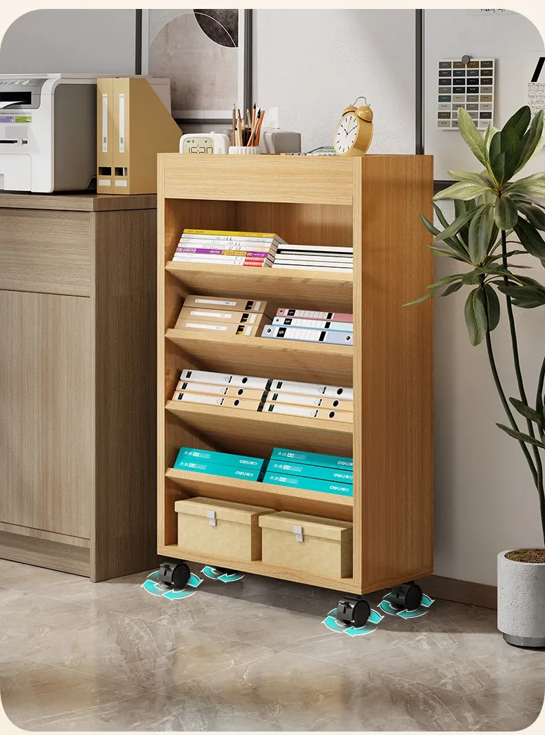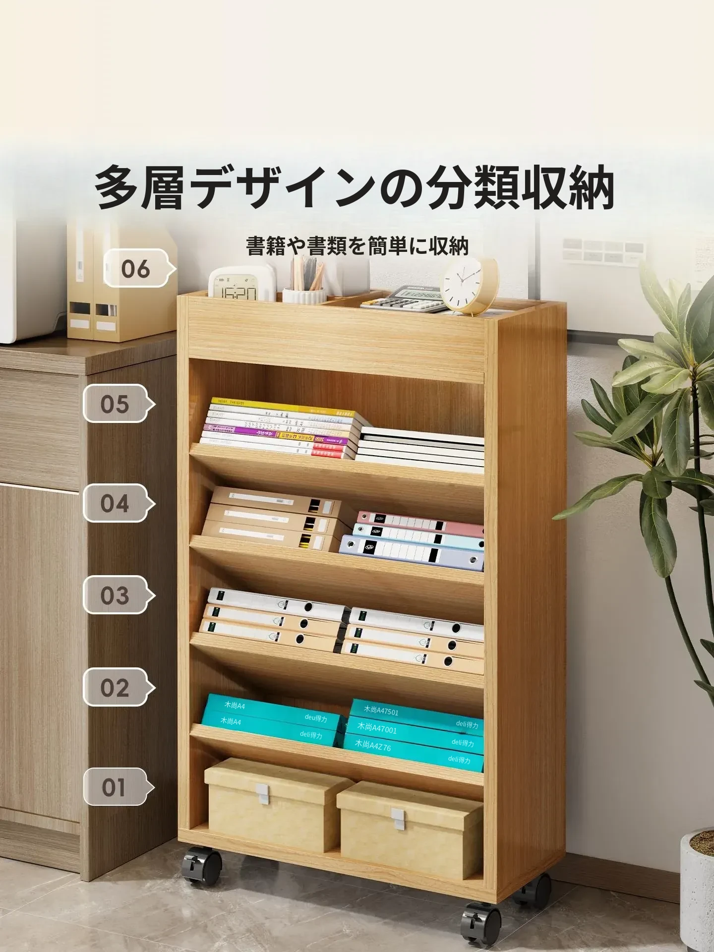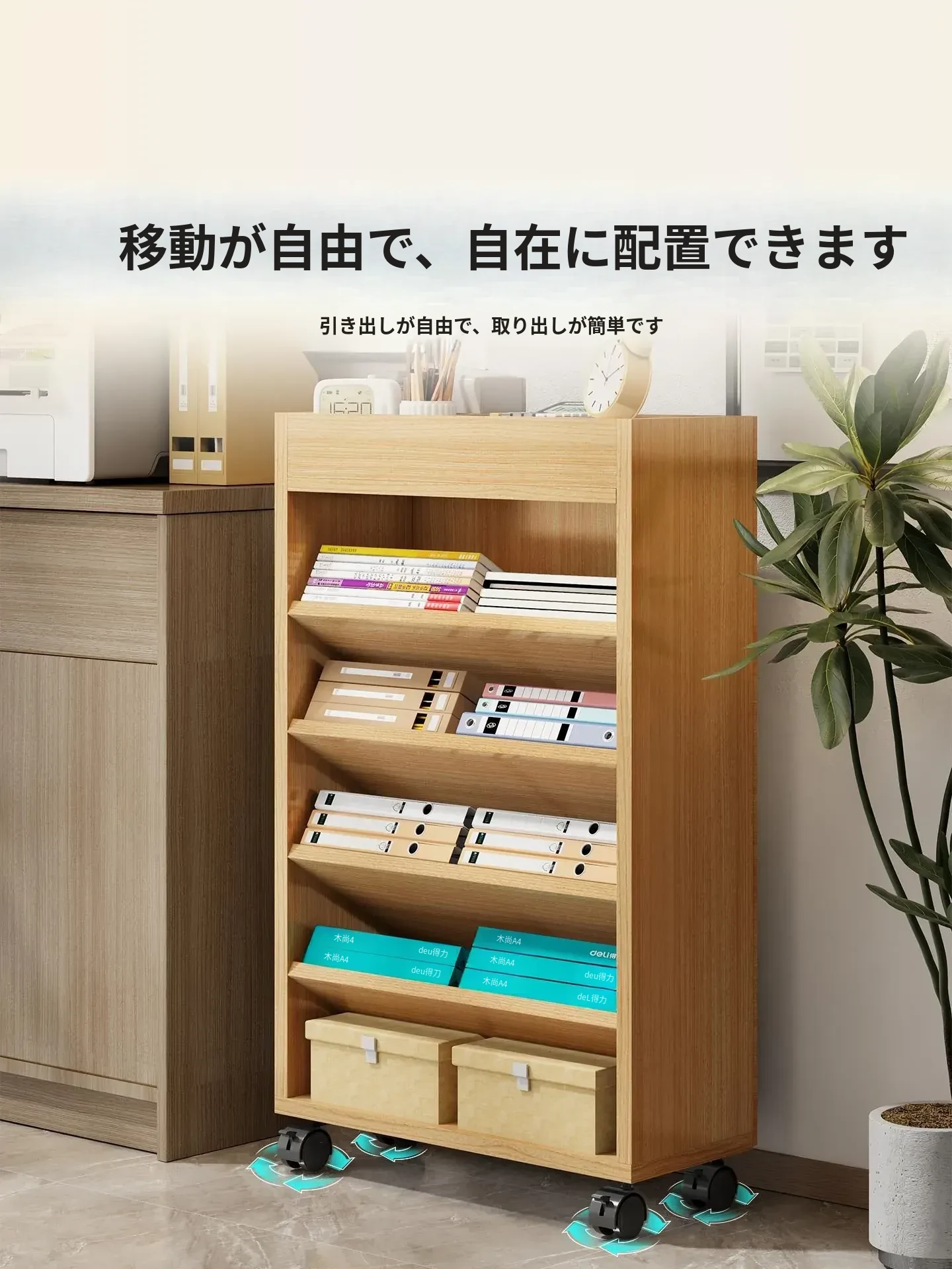 木製オフィスファイルキャビネット - 移動可能な収納ラックで、リビングや寝室に最適!壁付けデザインでスペースを有効活用。スタイリッシュなデザインで、あなたの生活空間を美しく整理整頓します。