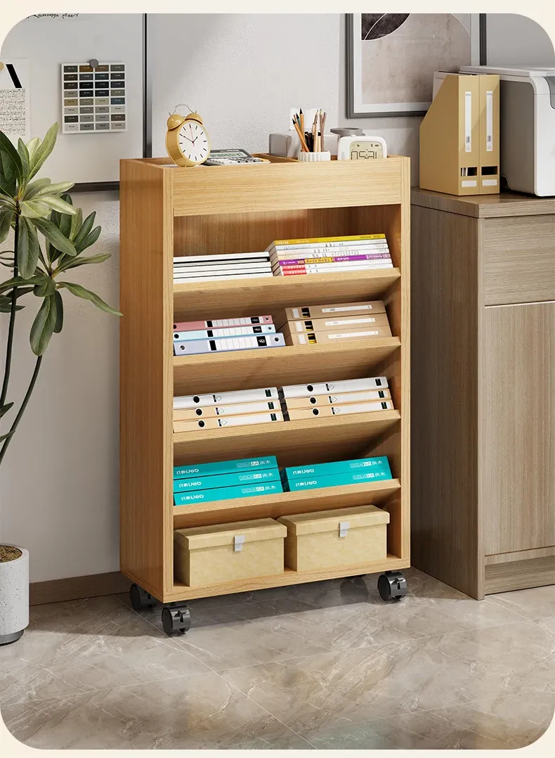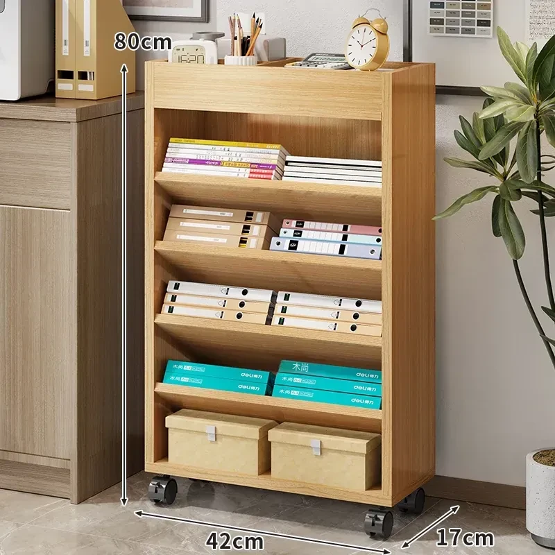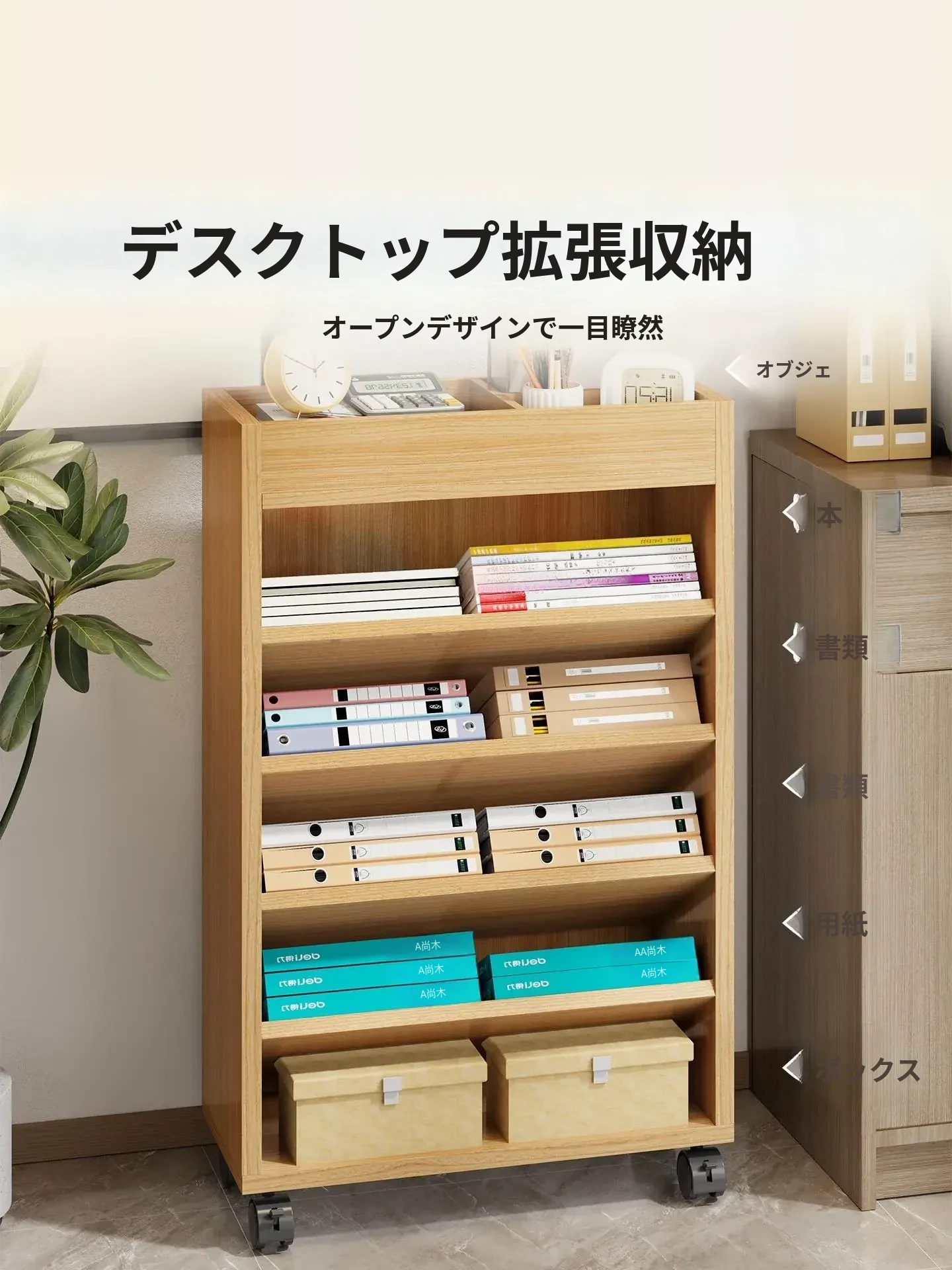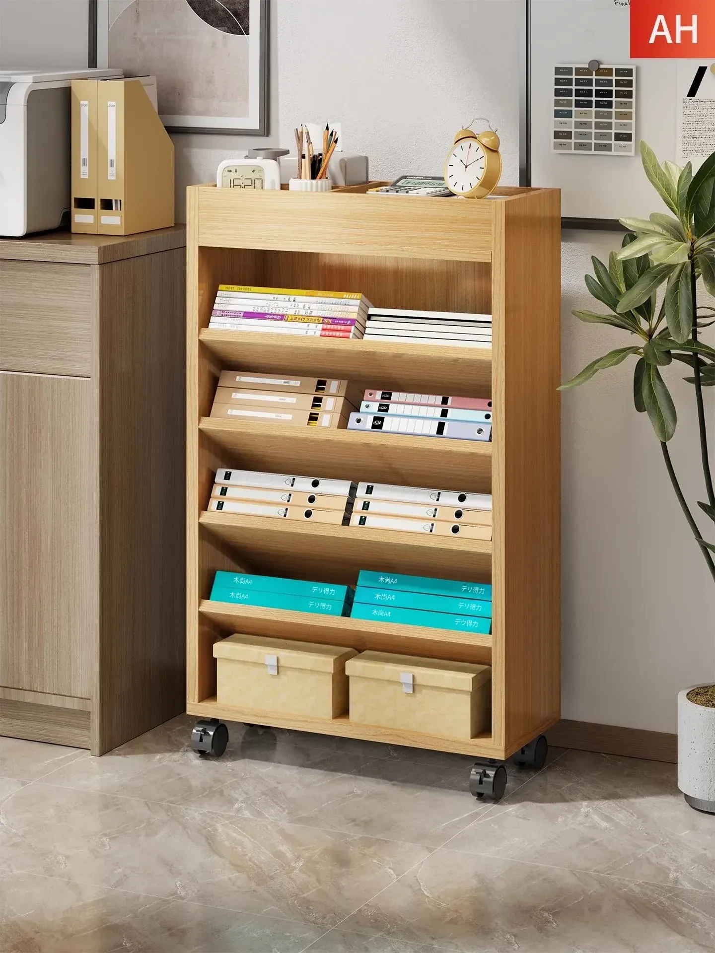 木製オフィスファイルキャビネット - 移動可能な収納ラックで、リビングや寝室に最適!壁付けデザインでスペースを有効活用。スタイリッシュなデザインで、あなたの生活空間を美しく整理整頓します。