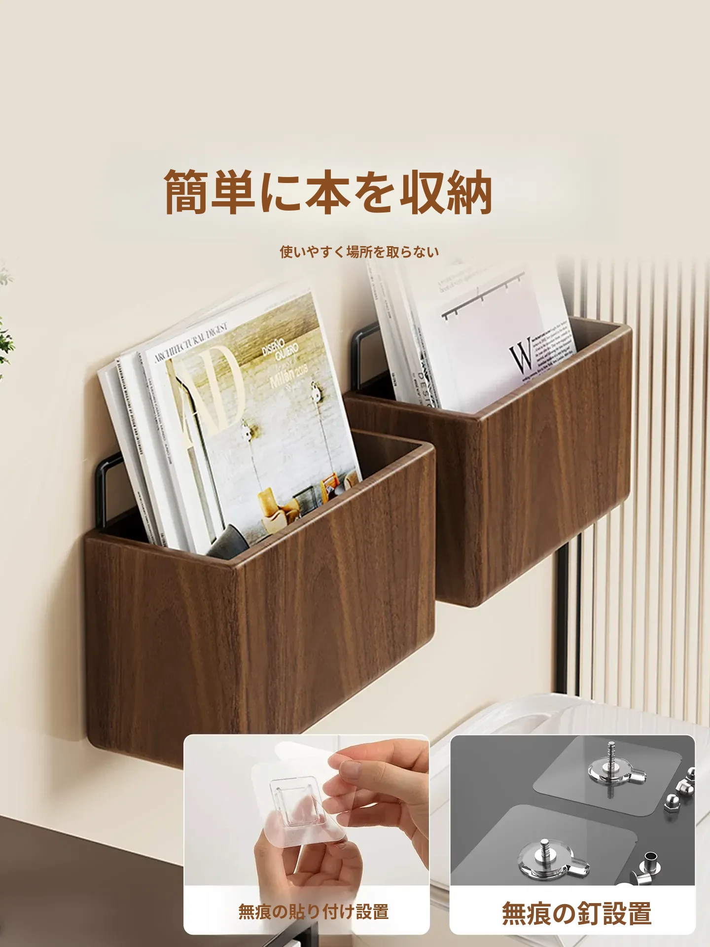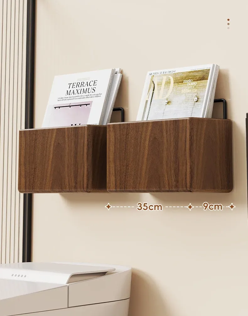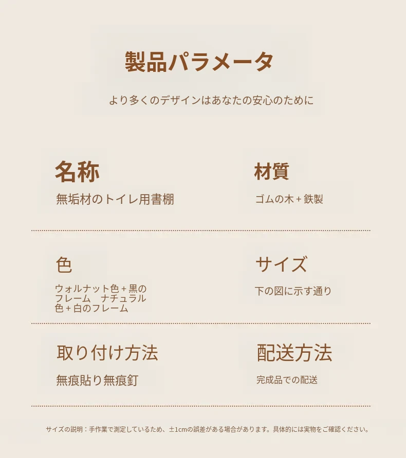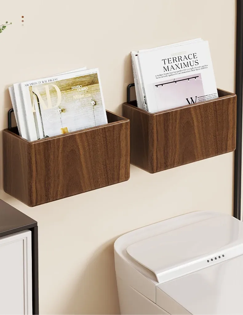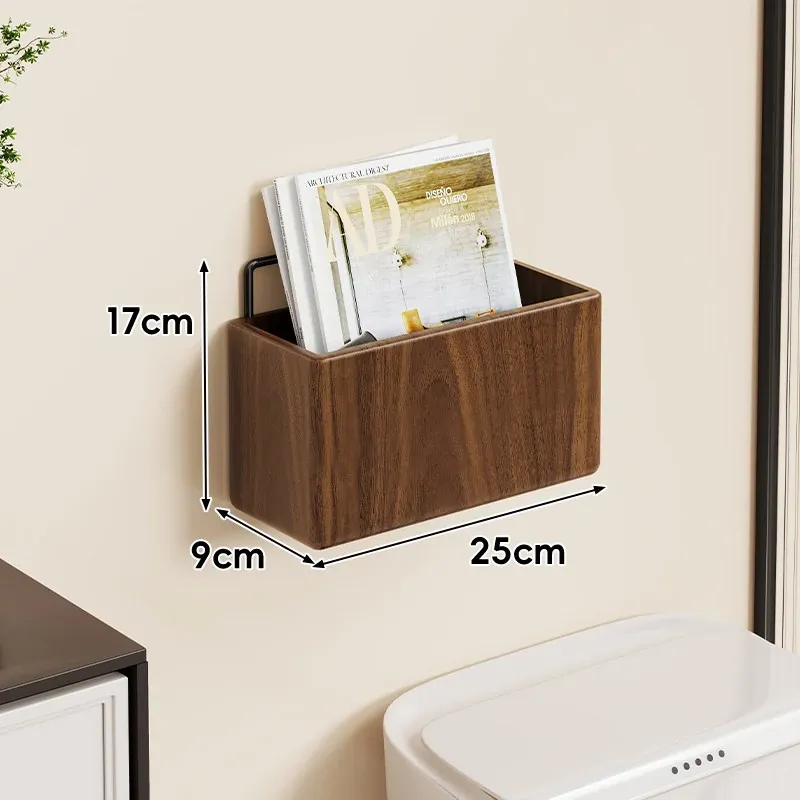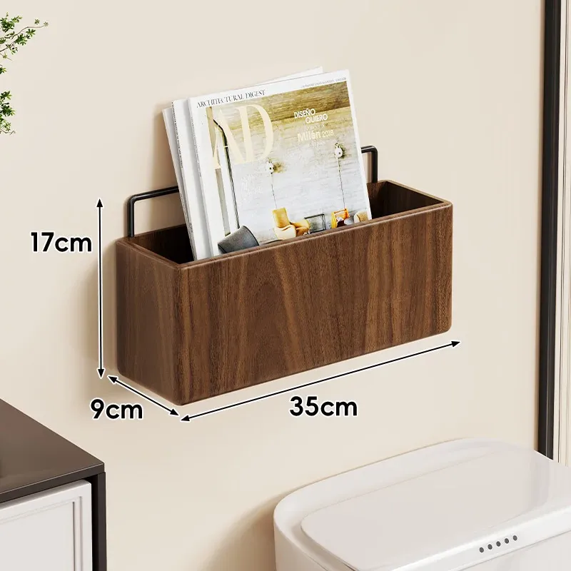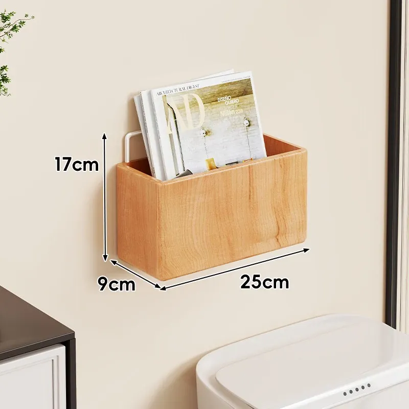壁掛け式実木バスルーム書棚 - 穴なしで簡単取り付け!収納バスケット付きで、寝室やトイレの整理整頓に最適な便利アイテム!おしゃれで実用的な収納ソリューションをお楽しみください。
