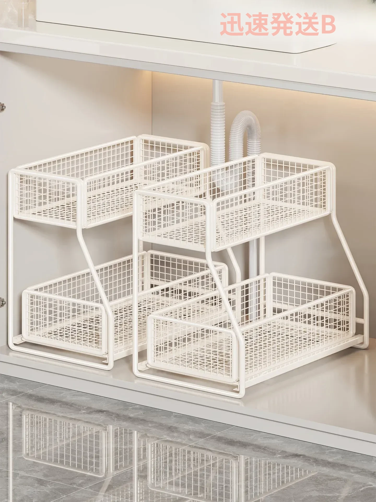 引き出し式収納ラック - 洗面台や浴室に最適な多機能バスケット!洗剤や小物の整理整頓にぴったり。省スペースでスッキリ収納でき、使いやすさ抜群のアイテムです!