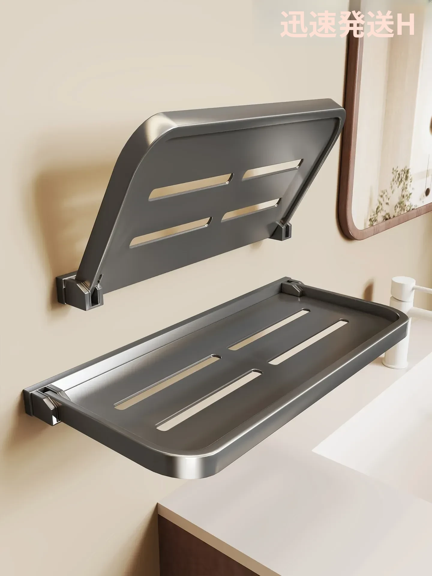 洗面台のスペースを有効活用!折りたたみ式バスルーム収納ラック - 鏡の前にピッタリ!洗面台やバスルームでの整理整頓に最適な壁掛け収納です。スッキリとした空間を手に入れましょう!