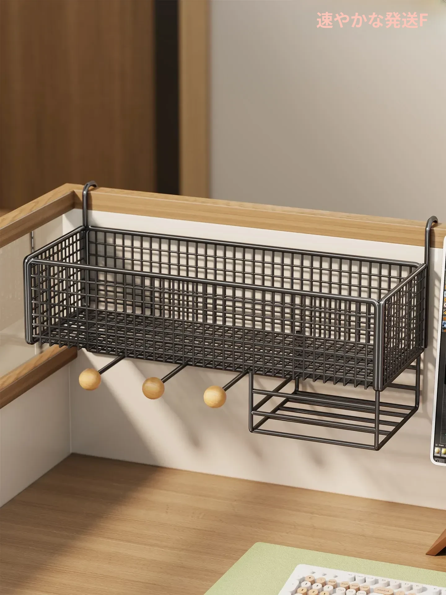 オフィスデスク用多機能収納ラック - 吊り下げ式フック&バスケットでスペースを有効活用!整理整頓が簡単にできる、あなたの仕事環境をスッキリさせるマストアイテム!