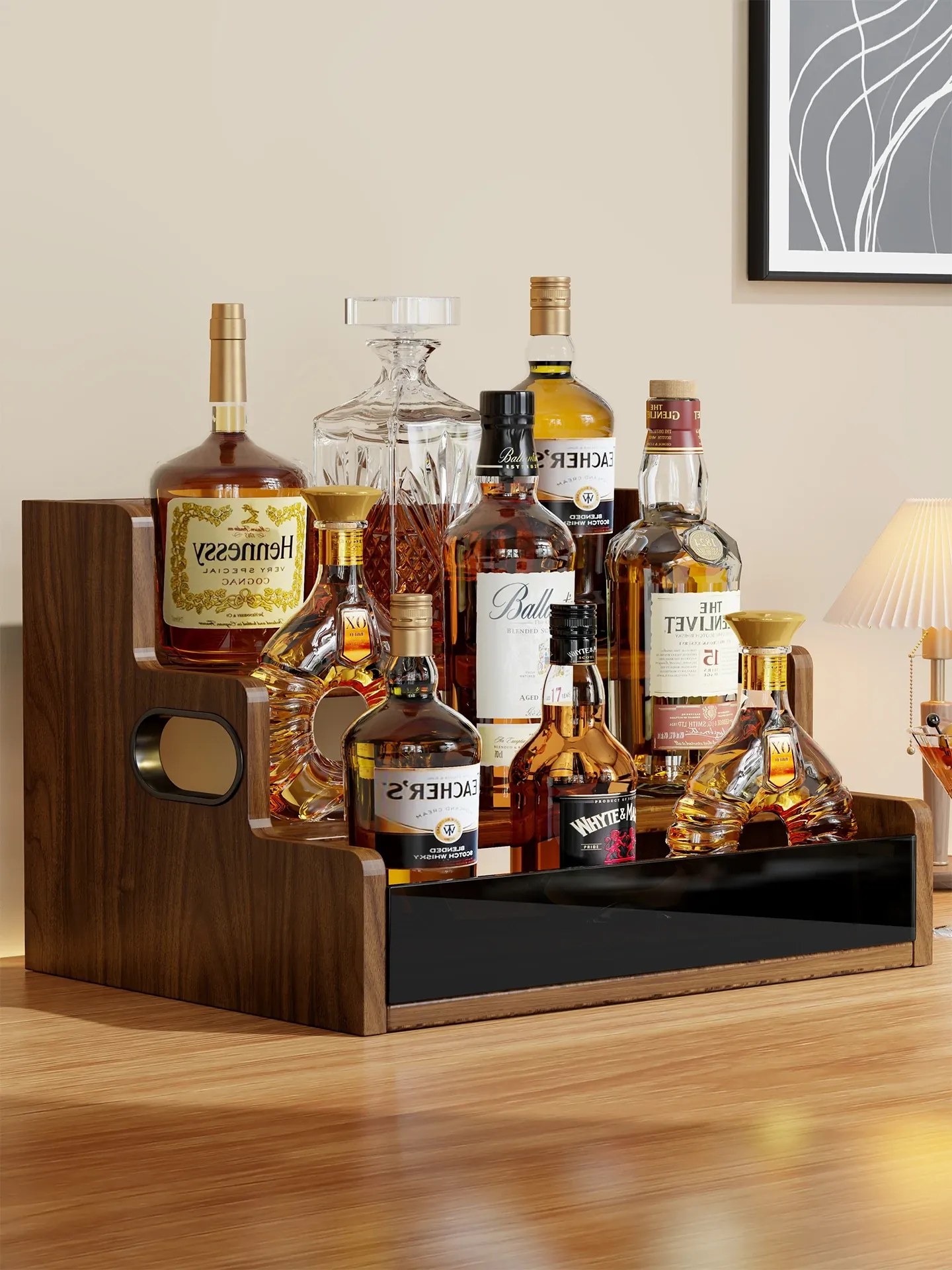 アクリル製バーカウンタートップ酒棚 - スタイリッシュなワインボトルスタンド&グラス収納ラック、階段式デザインでおしゃれにワインをディスプレイ!卓上に最適な赤ワイン展示ラック。
