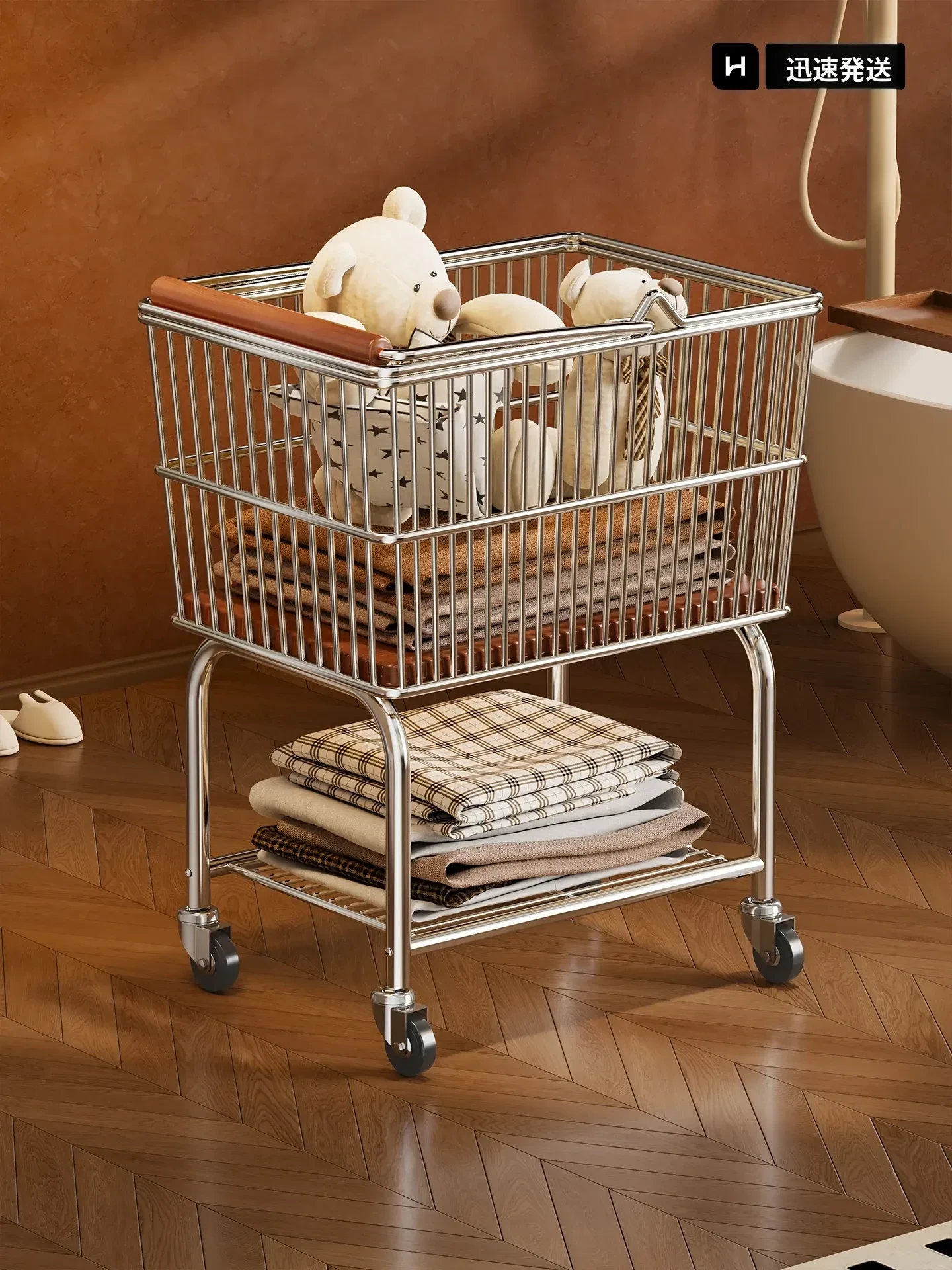 便利な二段式キャスター付き洗濯カゴ - 寝室やバスルームで使用可能な移動式収納バスケットで、汚れた衣類をスッキリ整理!おしゃれで機能的なデザインで、お部屋をスッキリ。