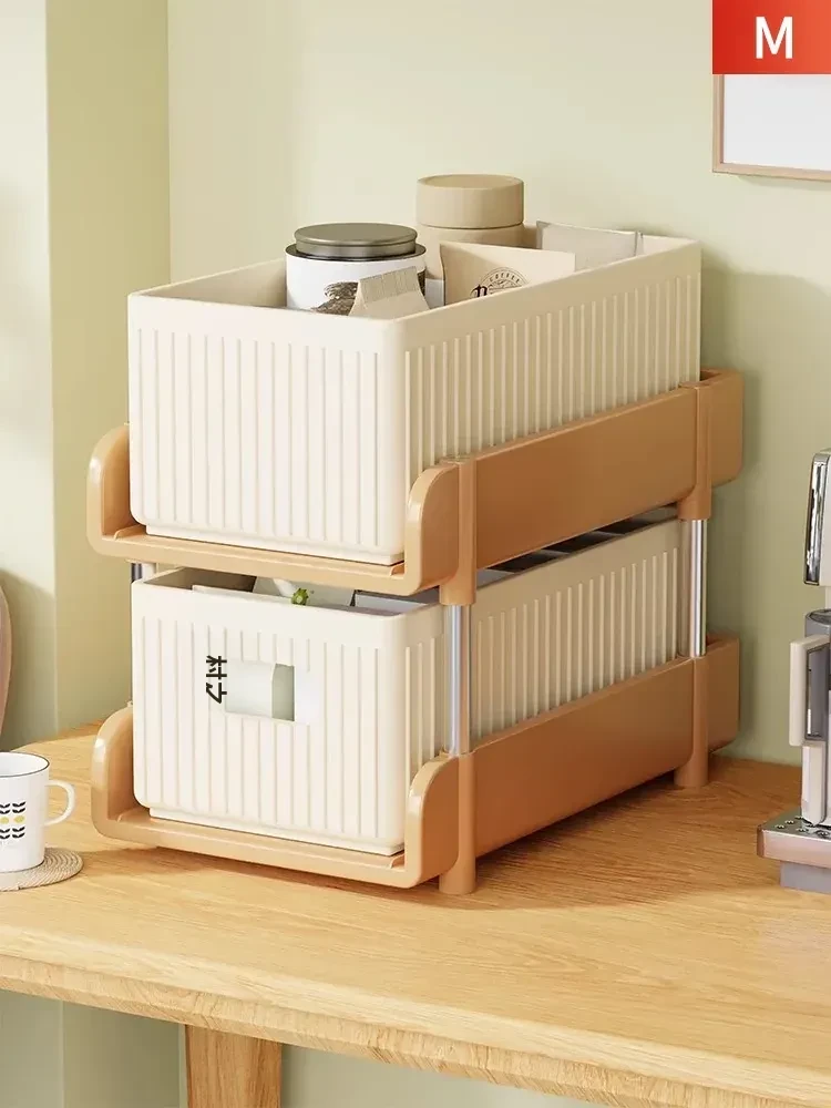 多機能デスクオーガナイザー|リビングに最適なコーヒーメーカー収納|引き出し付きのキッチン用スナック&カップ整理ボックス|おしゃれで便利な収納ソリューション!