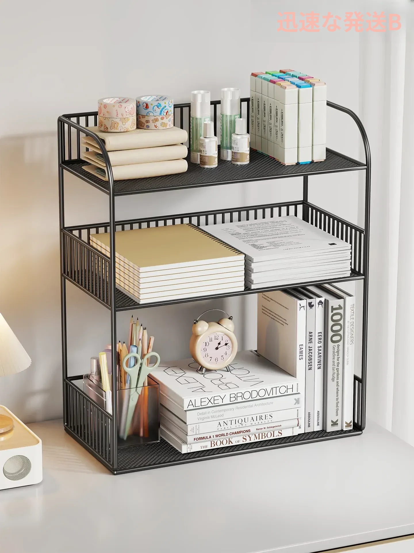 デスク用大容量本棚 - 学生向け教科書収納ラック!卓上スペースを有効活用し、整理整頓も簡単。分層デザインで、書類や本をスッキリ収納。勉強や仕事がもっと効率的に!