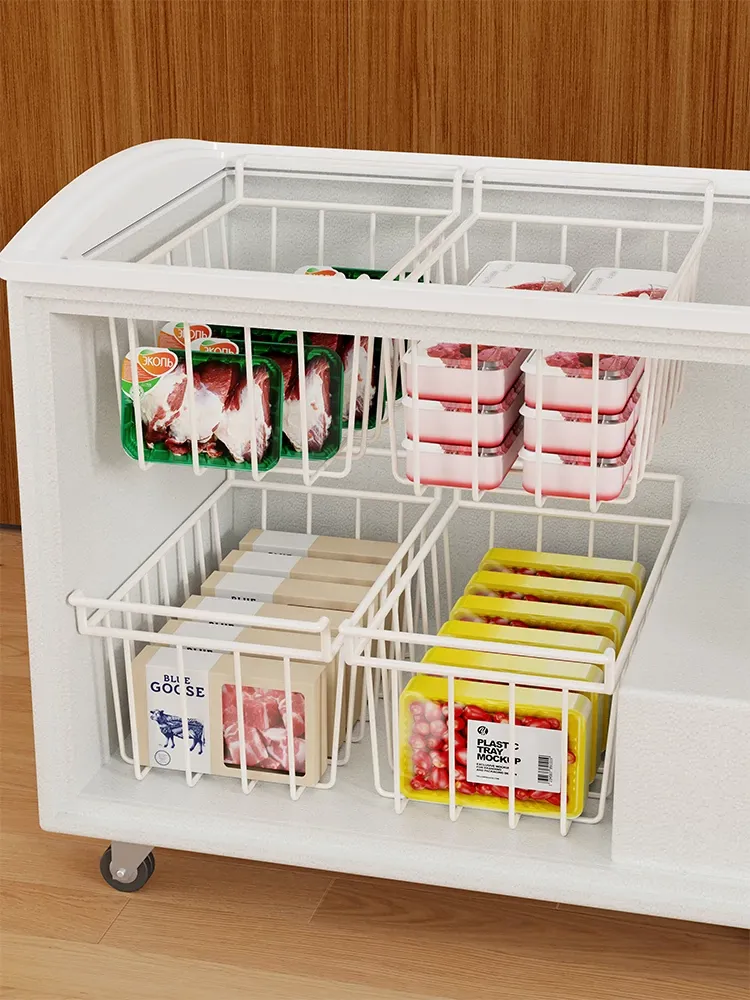 冷凍庫用収納バスケット - 食品をスッキリ整理!家庭用の多層仕切りでアイスクリームも簡単収納!あなたのキッチンをもっと便利に!