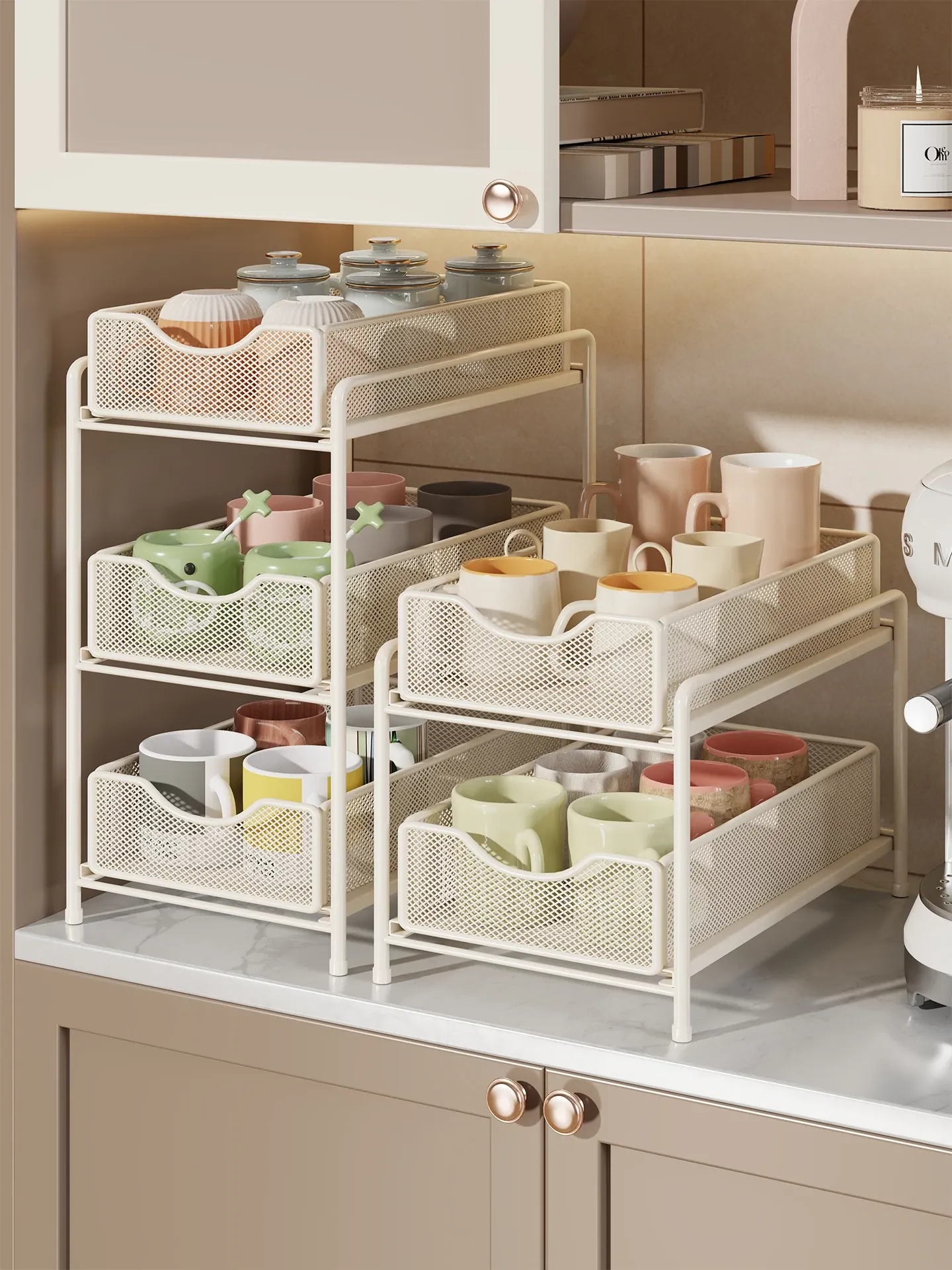 多層ティーカップラック|便利な水切りトレイ付き!家族のための茶具収納に最適なデザイン!デスク上でスッキリと整理整頓。あなたのキッチンにおしゃれなアクセントを加えます!