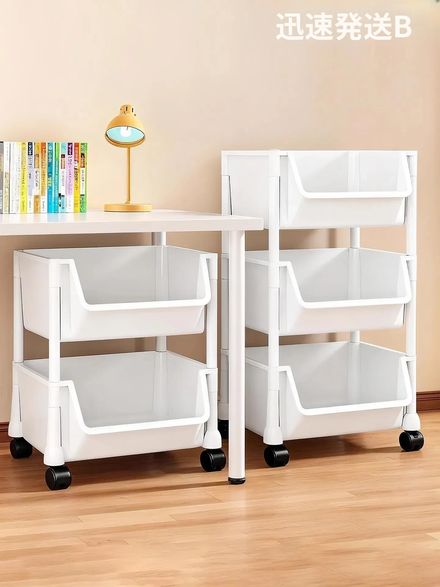 多機能収納!宿舎に最適な移動式ラック - おしゃれなブックシェルフ&お菓子・おもちゃ収納に最適な多層デザイン!省スペースで便利なデスク下収納キャリー。